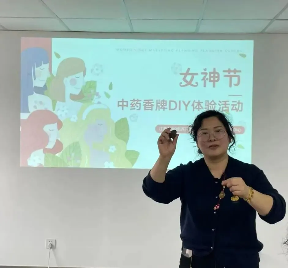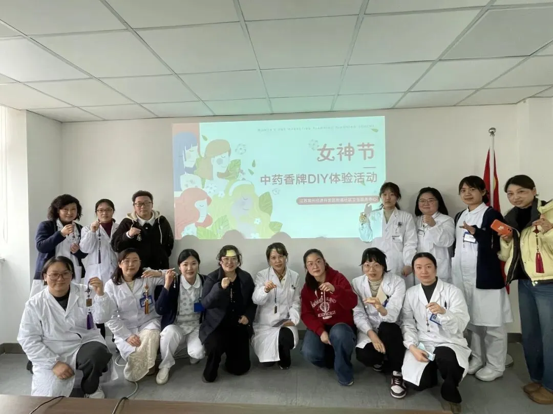 三月芳菲至,香韵满庭院。为庆祝女神节,常州经开区街道社区卫生服务中心工会于3月6日开展了中药香牌 DIY 体验活动。全体女职工齐聚一堂,以香为媒,以手为艺,共度了一段温馨美好的专属时光。