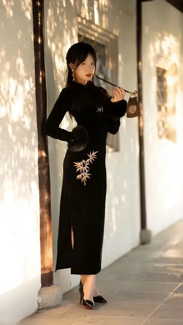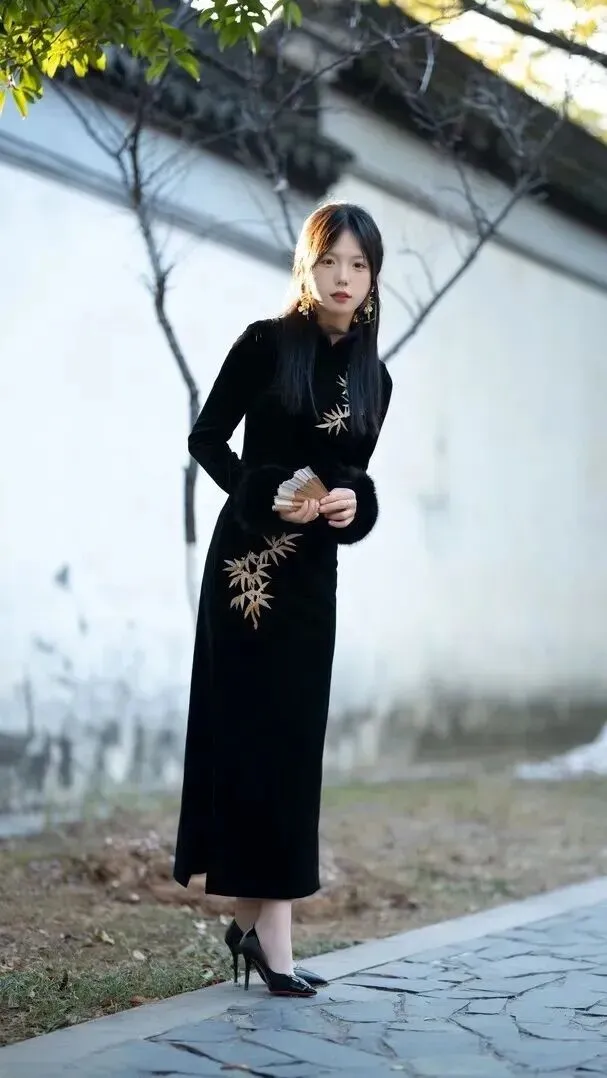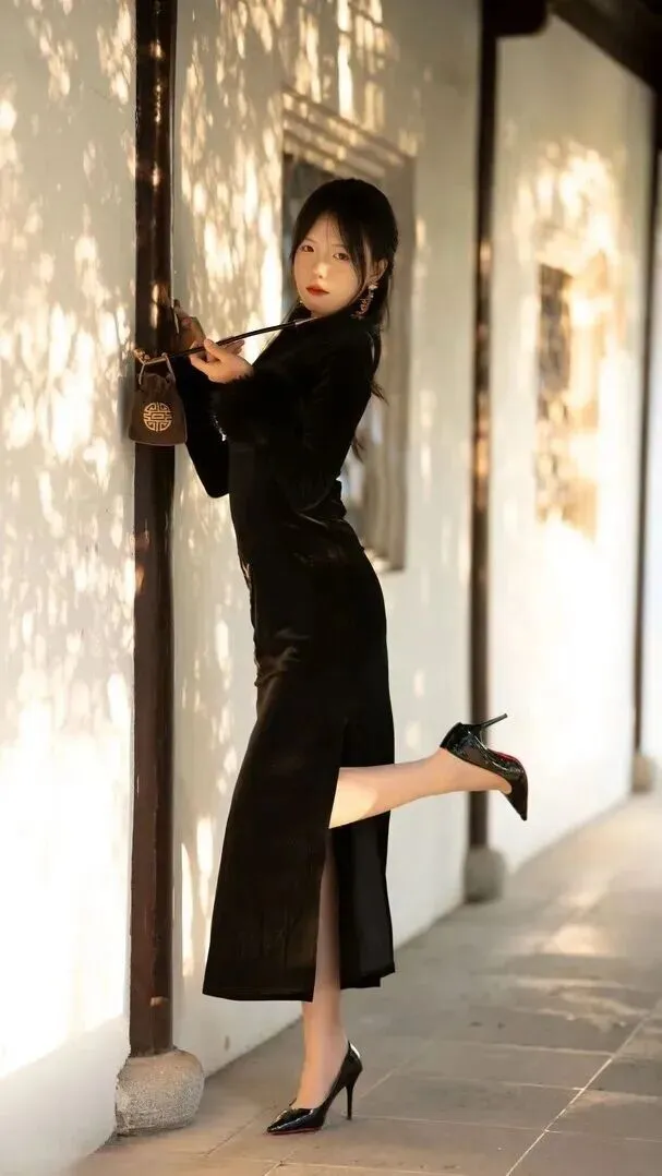 黑色丝绒旗袍穿搭攻略:秋日里穿出复古女神范儿!