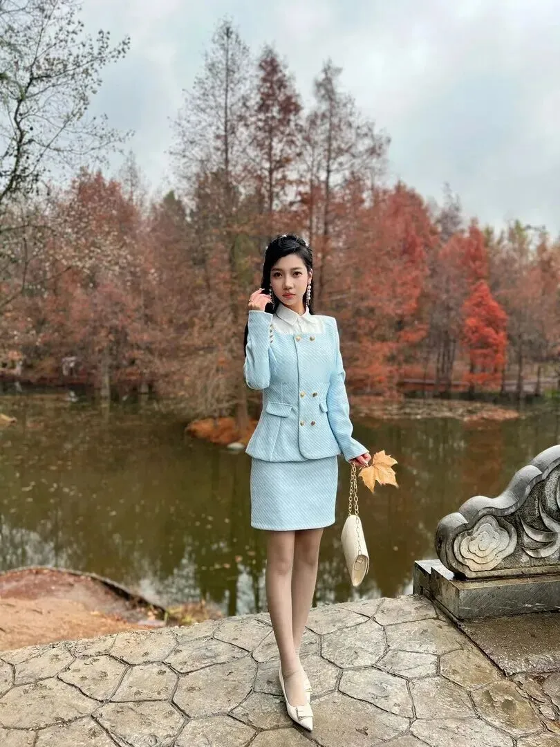 所以这套蓝白格小香风很好。不论高矮胖瘦都可以找到适合自己的穿着方式。颜色清新,版型优秀,随便搭都好看。秋天很短,赶紧穿起来,使自己成为街头一道亮丽的风景。