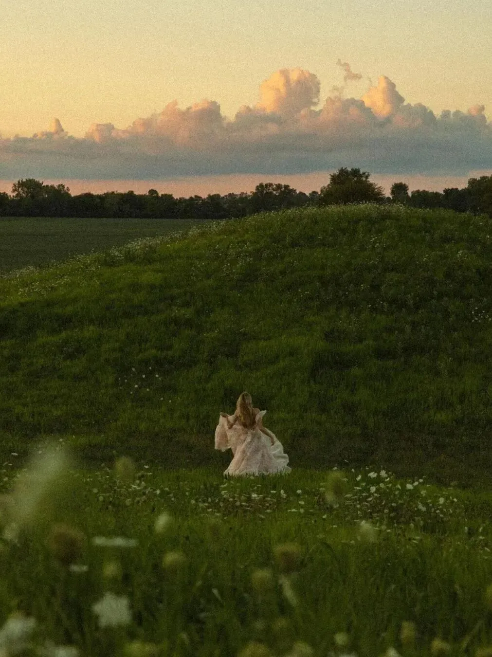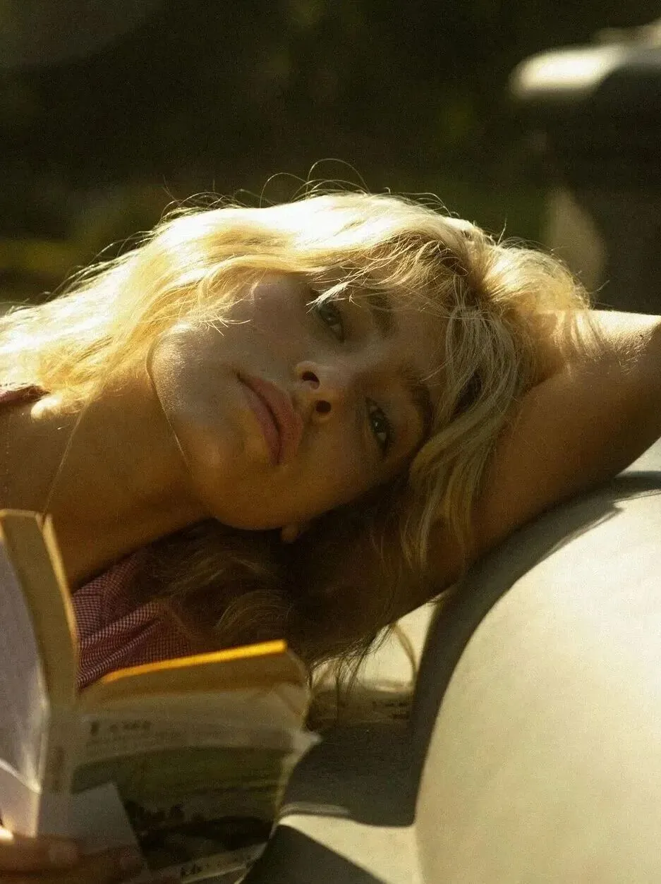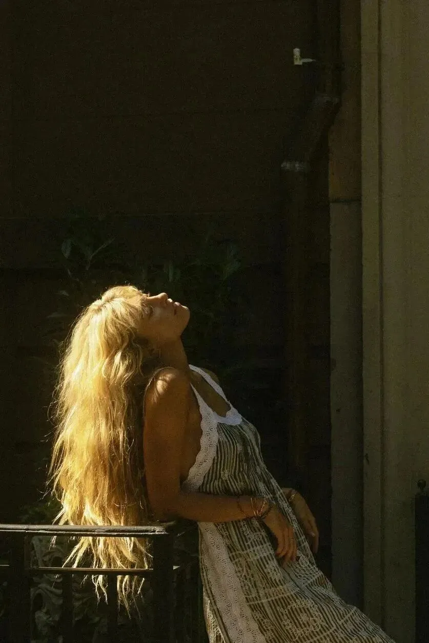而且她比较喜欢暖色调,尤其喜欢在微醺的黄昏时刻拍摄——夕阳下的沙滩、洒满柔光的草地…  她都能用暖调光影充盈画面,让柔和的光线洒在女孩身上,宛如给人物镀上一层温柔又热烈的光辉,氛围感直接拉满。