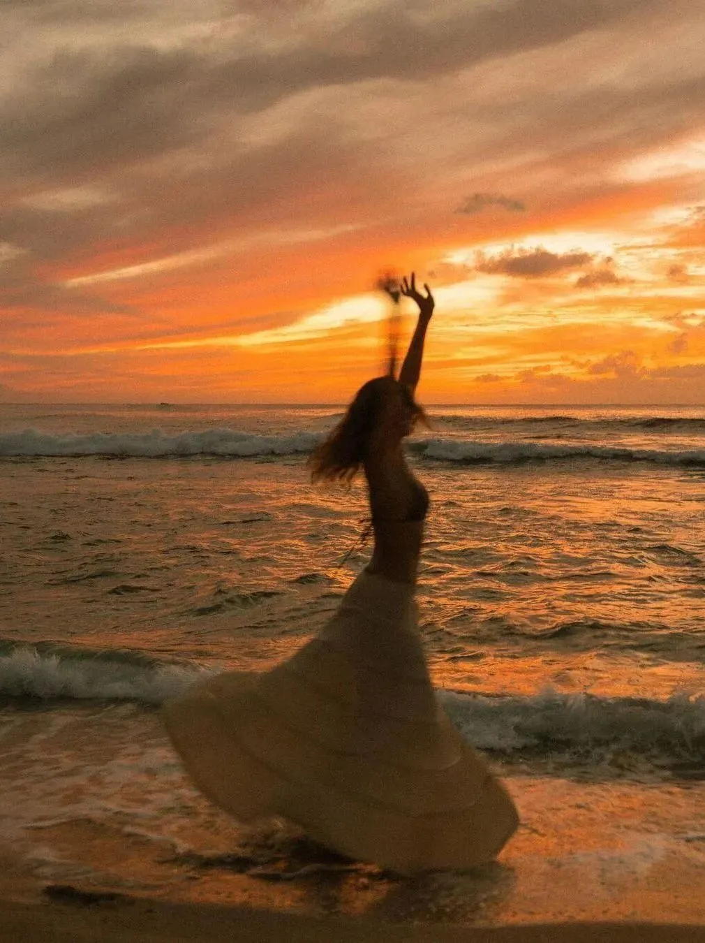 在她的镜头里,女孩、落日、海边、花裙子是最常见的组合,每一个瞬间都像电影里的关键帧,定格下最唯美的模样,没有刻意的修饰,只有纯粹的浪漫与松弛,把女性的柔美与自然的治愈完美结合。