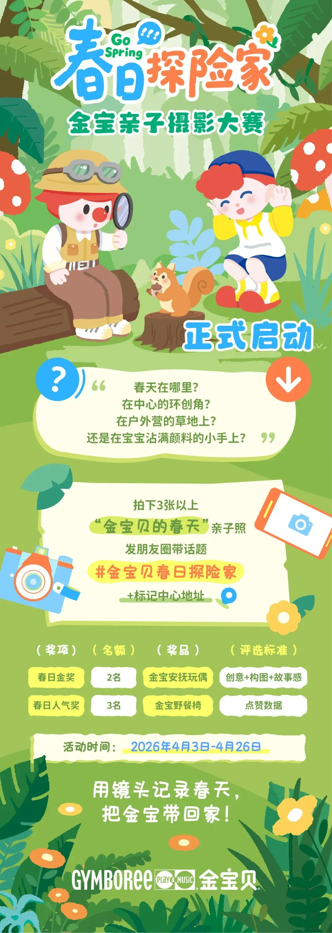 📸 #GoSpring春日探险家 金宝亲子摄影大赛 即将启动拍下“金宝贝的春天”,赢金宝安抚玩偶/野餐椅