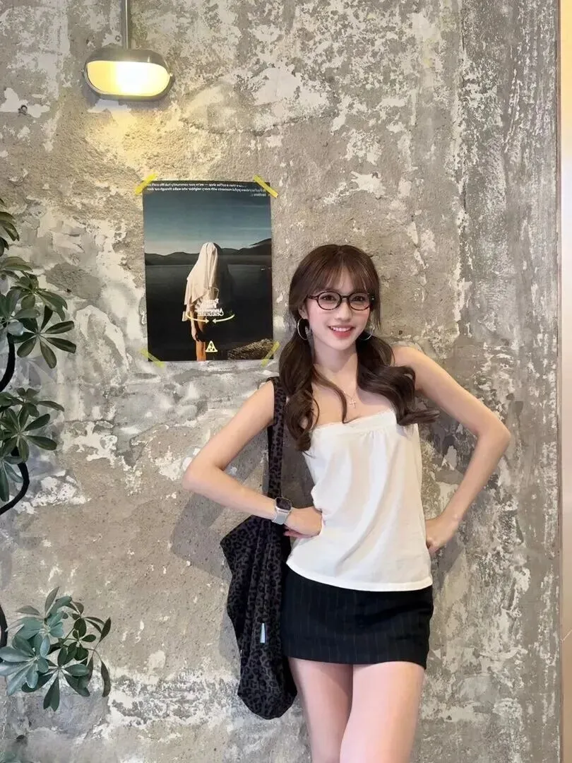 她汇报了老师说她是个纯真单纯的少女。波浪长发加眼镜,气质有高低。白色蕾丝抹胸吊带上锁骨部分露出,不露过多又显得妩媚动人。