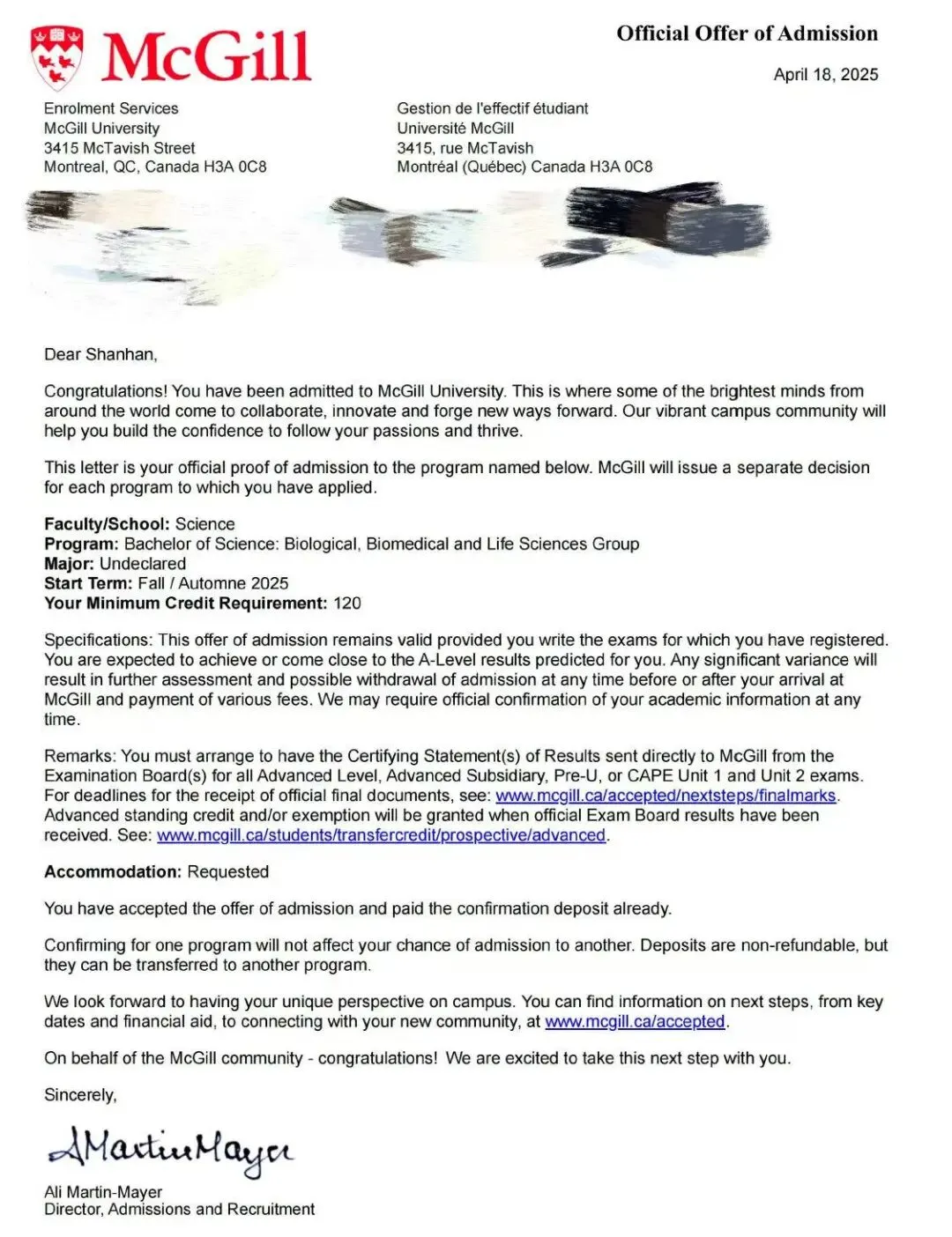 在国际教育的赛道上,每一份亮眼的录取结果背后,都是扎实的知识积累与科学的学习方法。今天我们邀请到毕业于领科教育上海校区,成功斩获多伦多大学、麦吉尔大学药理学专业(Pharmacology)录取的Nancy同学,和我们聊聊她的学习经历、提分秘诀,以及从高中到大学的学习衔接心得,希望能为正在备考的你带来启发。