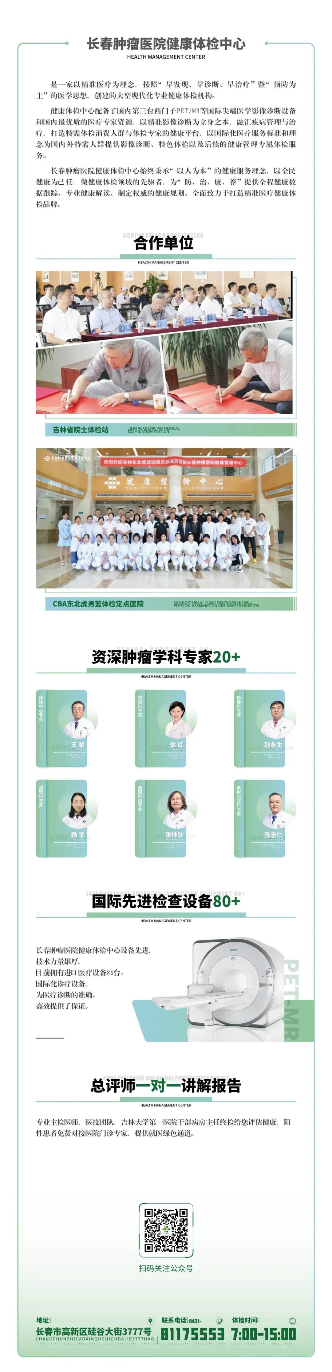 体检地点:长春肿瘤医院健康管理中心(长春市高新区硅谷大街 3777 号)