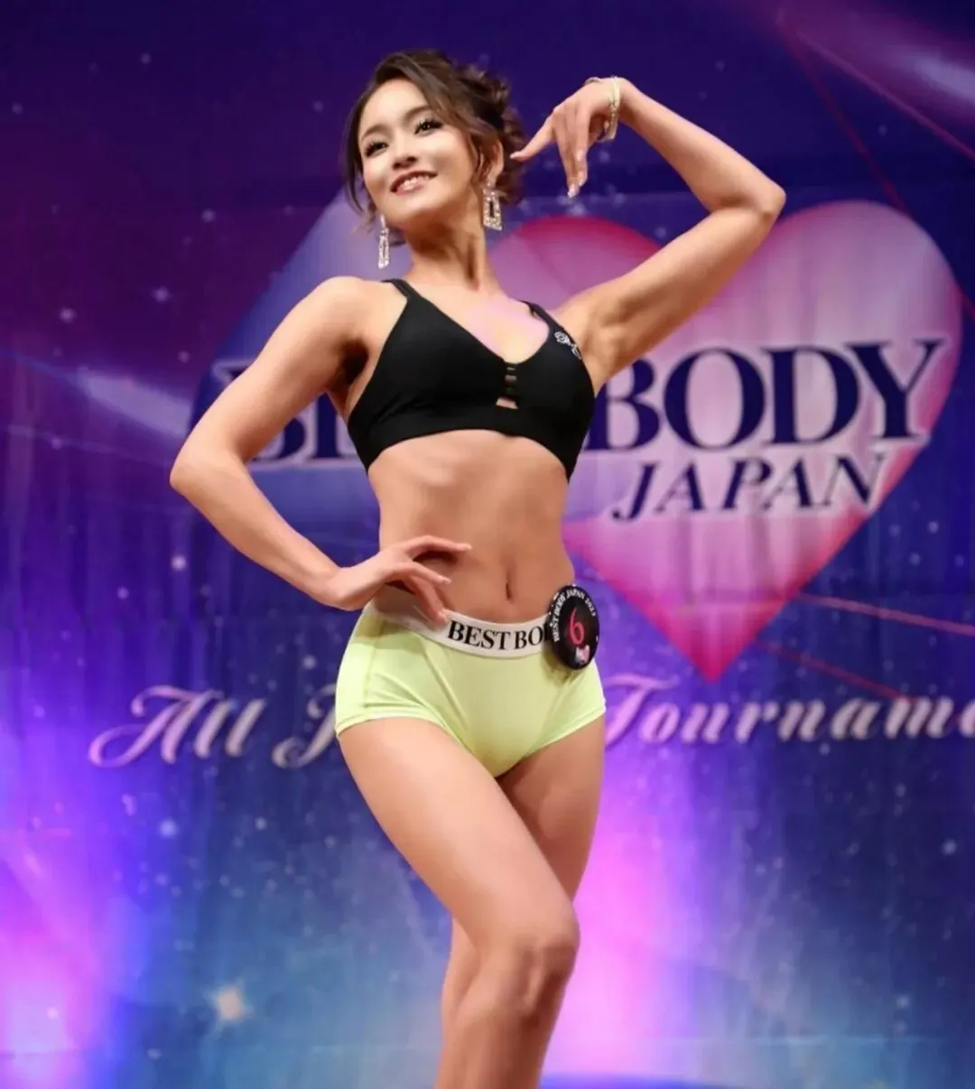 她在日本知名美体赛事 BEST BODY JAPAN(BBJ)中成绩斐然,曾连续两年斩获大赛健身模特冠军,也拿下过九州赛区MS.BEST BODY KYUSHU的荣誉。