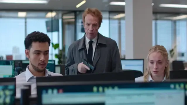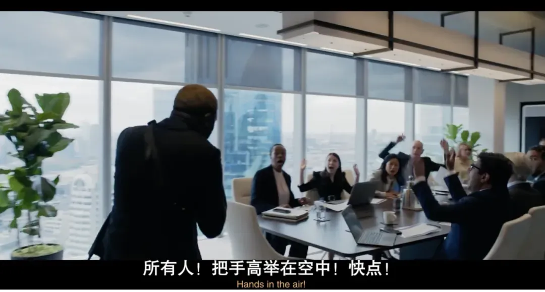故事从第一集就开启高能模式,一群蒙面持枪的劫匪突然闯入公司,打破了办公室的平静,所有员工瞬间沦为阶下囚。劫匪的目标十分明确,并非抢夺现金,而是瞄准了公司掌控的巨额养老金资金,他们用信号干扰器封锁了整层楼的通讯,切断了员工与外界的所有联系,随后开始发号施令:让员工卢克执行一笔价值40亿英镑的资金交易,同时逼迫扎拉前往托管行确认交易指令。在枪口的威胁下,两人别无选择,只能按照劫匪的要求操作,短短时间内,公司几乎所有的养老金资金便被洗劫一空。