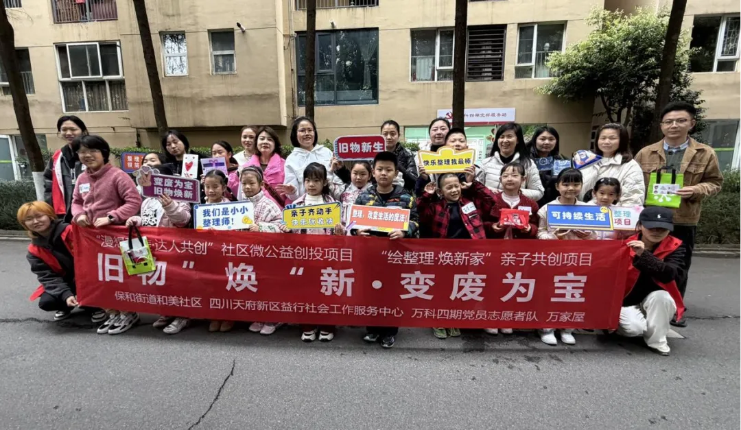 2026年3月8日下午,刘春艳(如一)老师牵头的“绘整理·焕新家”亲子共创项目之旧物“焕”新·变废为宝主题活动,在成都市成华区和美社区万科四期万家屋圆满开展。本次活动吸引了17组亲子家庭参与,氛围热闹温馨。