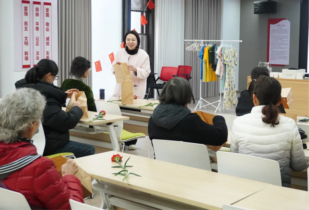 • 活动现场,刘春艳(如一)老师、龚婷婷两位CALO整理师现场指导,带领亲子家庭开展旧物改造。大家动手将常见的奶茶袋改造成实用收纳盒,把闲置旧T恤制作成时尚挎包,既实现了废物利用,也收获了动手的乐趣。同时,孩子们亲手绘制贺卡,将心意送给妈妈,让这个女神节因陪伴更显温暖。