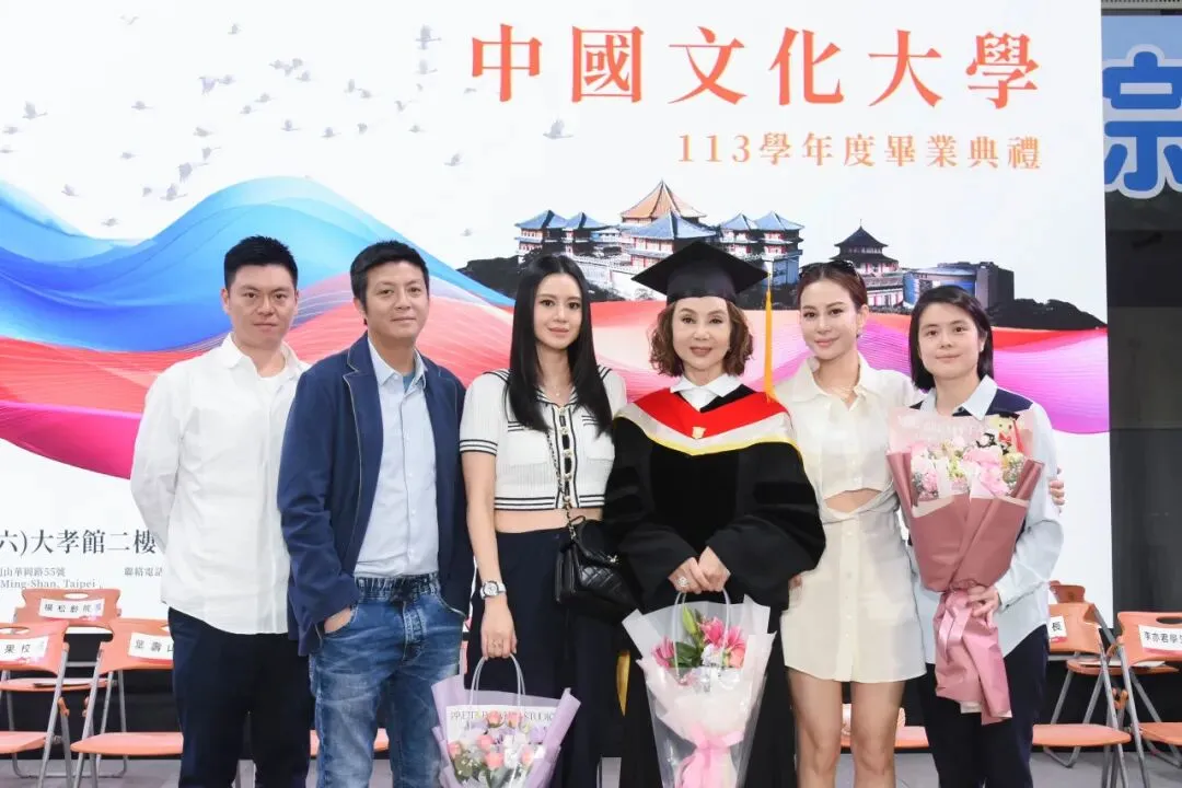 2025年谢玲玲取得中国文化大学文学名誉博士学位,子女现场道贺