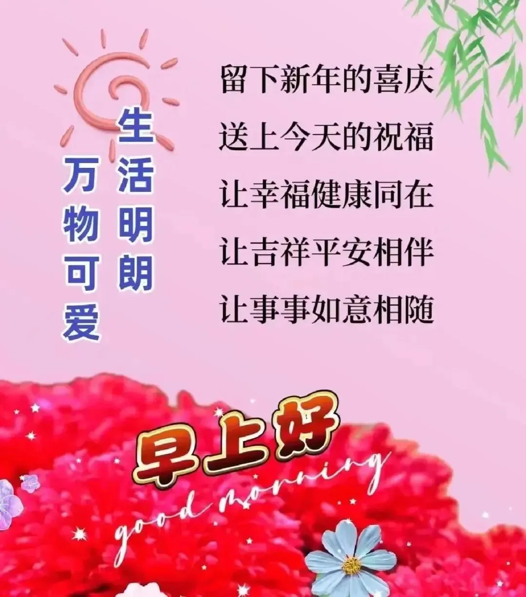 朋友们,早安!美好的祝愿,送给你们:烦恼忧愁随风散,快乐好运伴身边;生活幸福似蜜甜,开开心心每一天。🌹🤝🍻🌺🏝️🎉