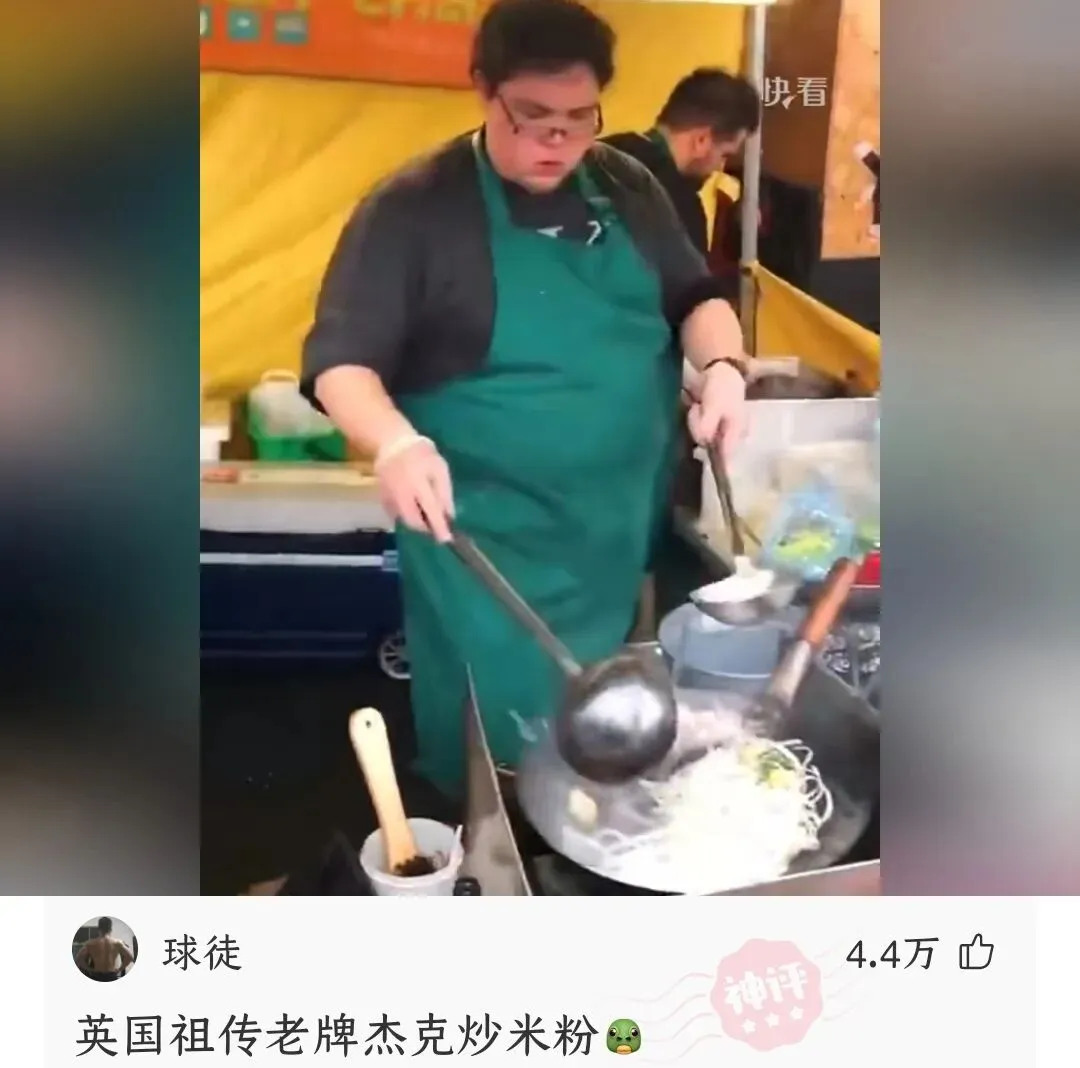 英国街头现中式炒粉小哥。网友:眼神散漫、动作沉稳,小吃摊的精髓!