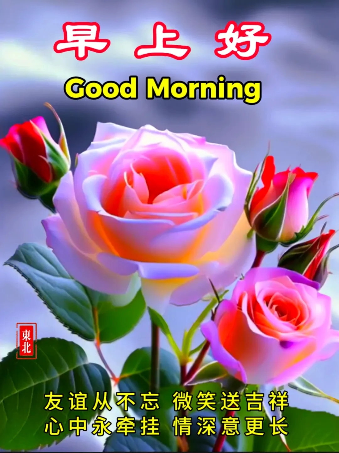 碧水蓝天传问候,友谊电波送祝福,越过快乐山川,飞过好运河流,经过希望田野,走过成功森林,将天地灵气、运气、福气送到你身边。早安!🌹🌞❤️🙏🍎🎉