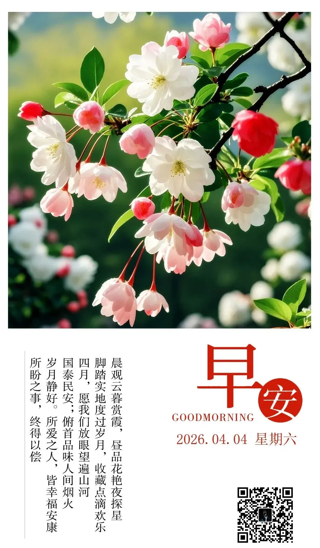 当前位置:首页>美女资讯>4月4日早安心语祝福图片:愿世间安好,你我无恙,吉祥安康