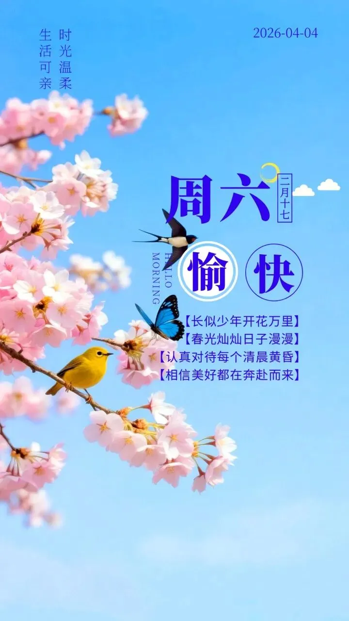 当前位置:首页>美女资讯>4月4日 周六愉快图片 周六早安祝福图片大全最新