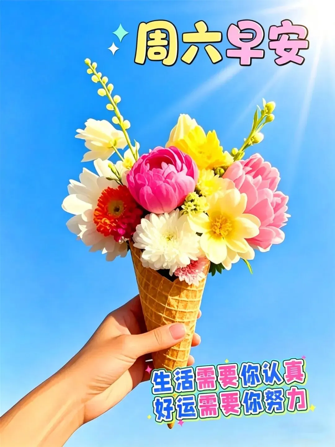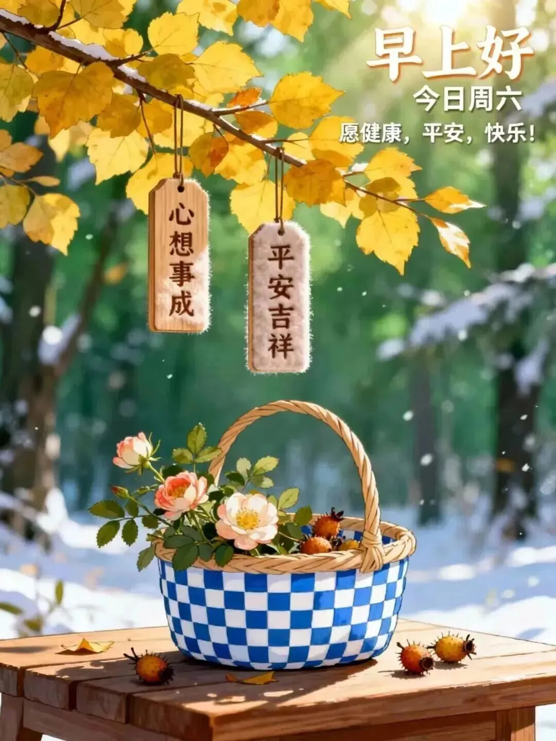 周六早上好,每天送上不变的问候,清晨送上温馨的祝福!让快乐紧随身旁,让心情惬意舒畅!开心如意,好运相伴;健康快乐,一生平安!