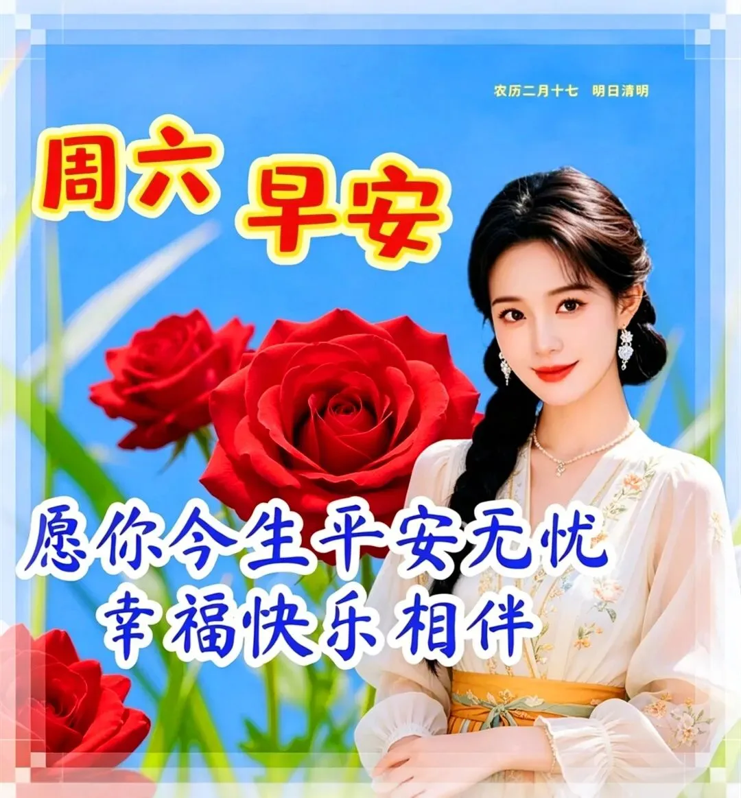当前位置:首页>美女资讯>4月4日周六早安祝福图片:清晨的问候,为您带来愉快的一天,周末愉快,早安!