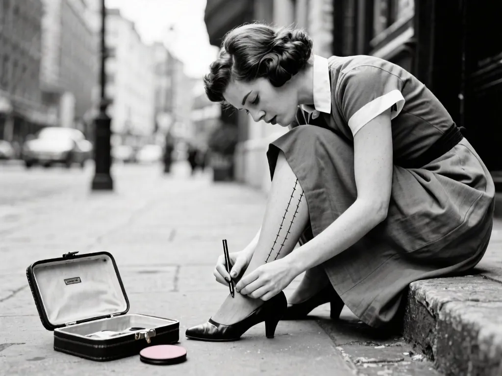 但好景不长,二战来了。尼龙这么结实的材料,全被拿去造降落伞、轮胎了,丝袜生产线直接停摆。这一下可要了爱美女性的命。商店里根本买不到,黑市上一双尼龙袜的价格被炒到天价,据说能顶普通人好几年的工资。 没袜子穿怎么办?女人们的智慧是无穷的。她们居然想出了用粉饼和眉笔,直接在腿上画出丝袜的纹理和接缝!当时还有一份特扎心的调查:问女人们最想要什么,三分之二的人选了“尼龙丝袜”,只有三分之一选了“男人”。 可见在“美”面前,其他都得靠边站。战后物资恢复,百货商店门口排起长队,好多女性激动得等不及回家,当场坐在马路牙子上就换上了新丝袜,那种对美丽的渴望,真是穿越了时空都能感受到。