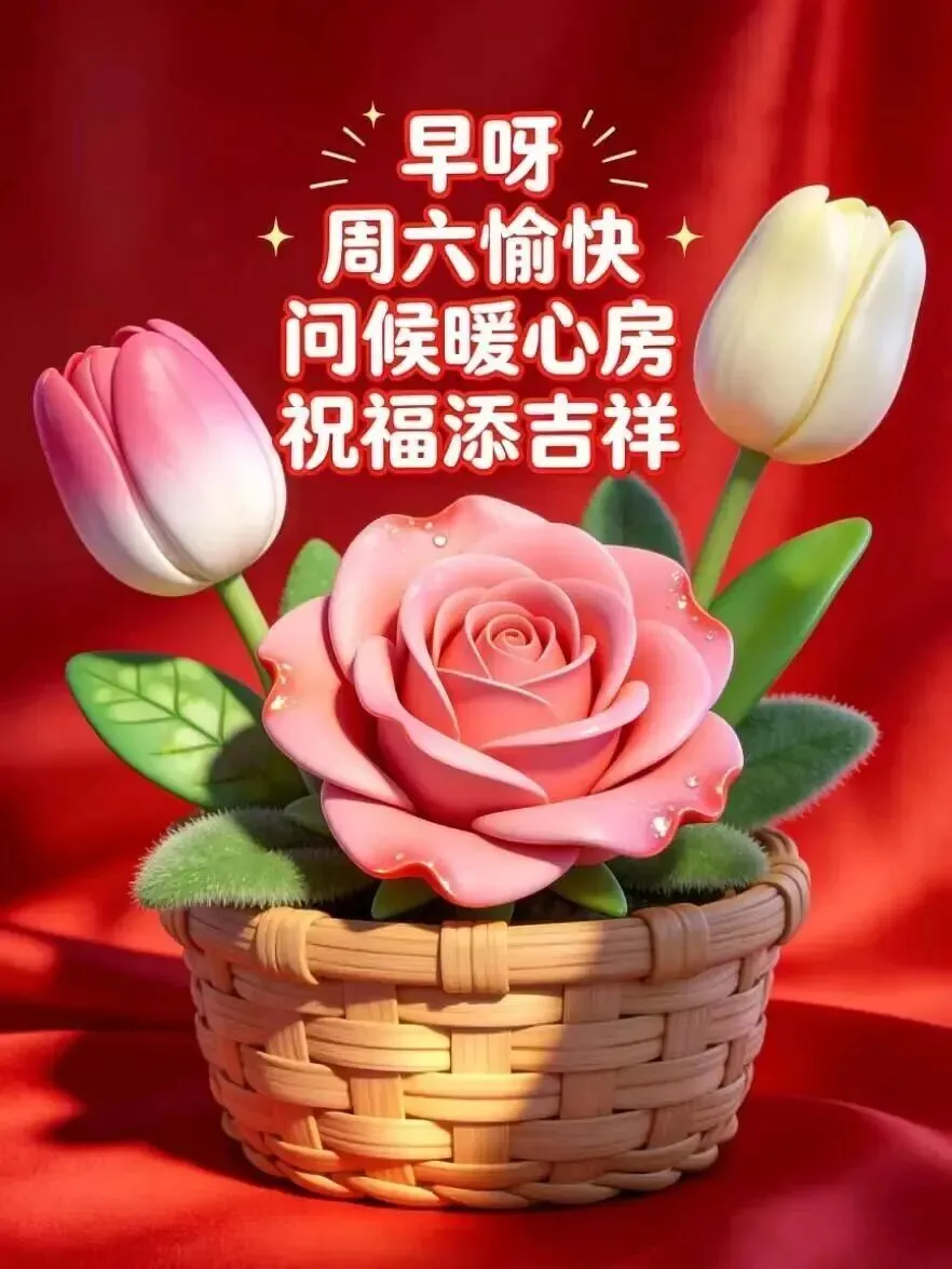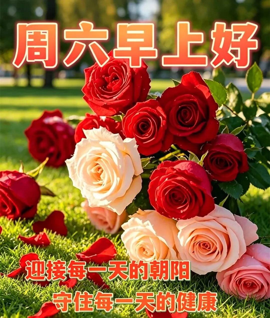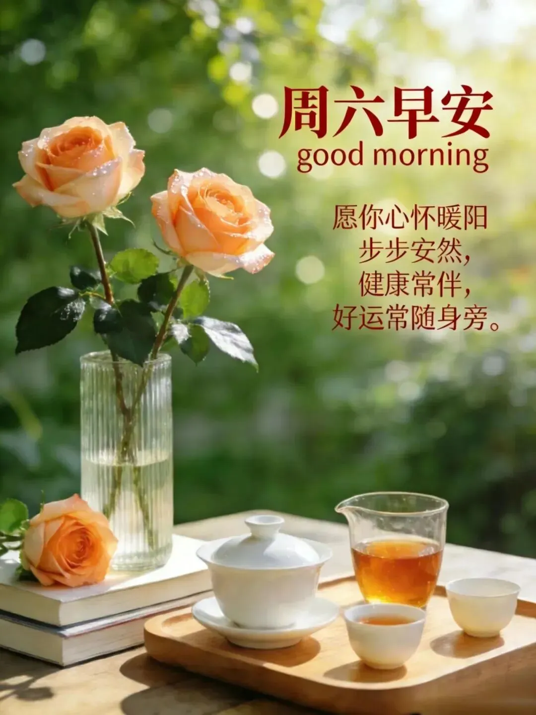 周六早上好,每天送上不变的问候,清晨送上温馨的祝福!让快乐紧随身旁,让心情惬意舒畅!开心如意,好运相伴;健康快乐,一生平安!