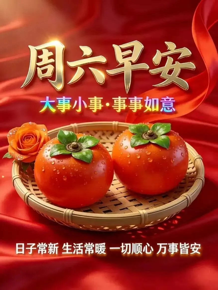周末周六好时光🌸,晨起舒心福满堂🏮。愿您放宽心事不慌张🧘,适度锻炼保安康🚶,晒晒太阳心情爽☀️,简简单单度日常🌾,健康相伴福气旺🧧,万事顺意乐洋洋🎉。