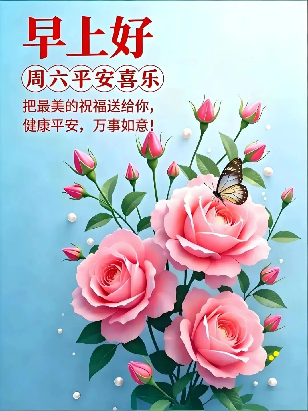 周六早安!🌤️ 周末时光多悠闲,愿您晨起精神好🍵,作息规律身体安💪。饮食清淡营养足🥗,闲来散步享清闲🚶,少操心、多欢笑😄,平安健康常相伴,日子舒心福寿绵🏮。