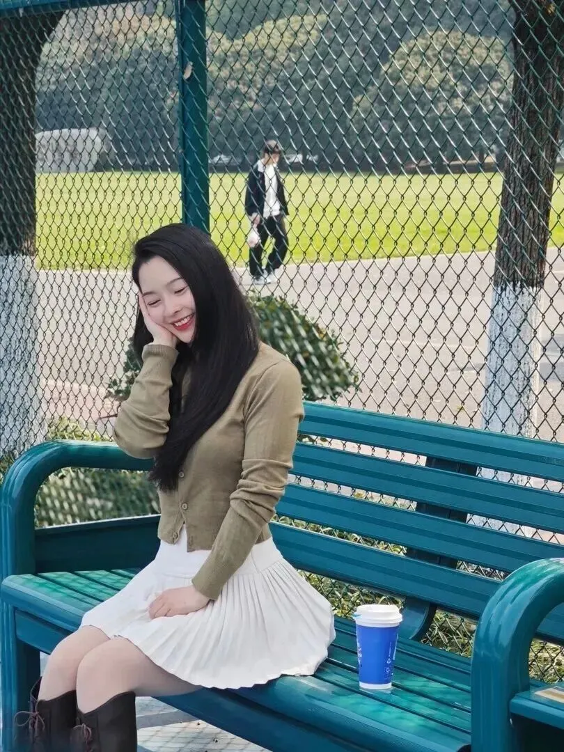 女孩笑起来非常有感染力,表情自然活泼,没有拍照的僵硬感。阳光照耀她的卡其色衣服与白裙的时候,她就仿佛被轻柔的包裹其中,裙子随着她身子的起落一起转动,非常好看。