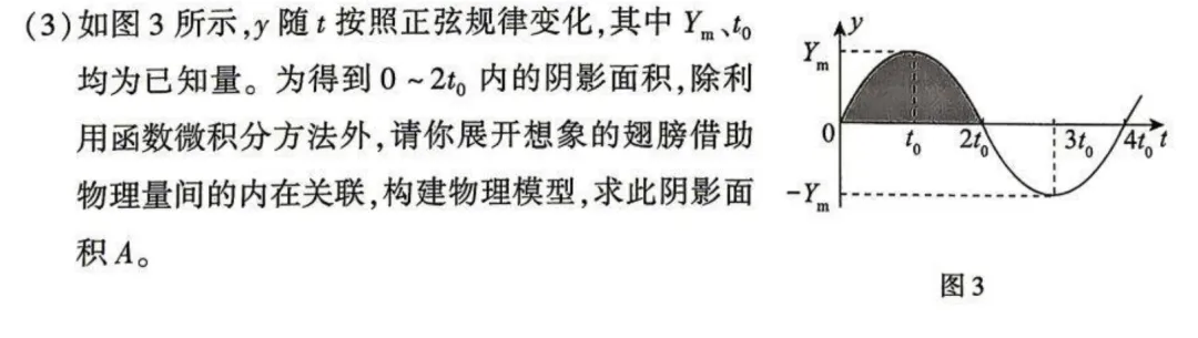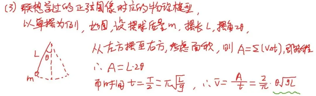 第三问,有点刺激了,相信很多人没见过这种题,说白了就是开放题,没有模型硬建!当你第一眼看到正弦图像的时候,你能想到哪些模型呢?简谐运动、机械波、正弦交变电流、圆周运动的分解。。。光是简谐运动就分很多种可能性。所以命题人让你“展开想象的翅膀”,太折磨人了!