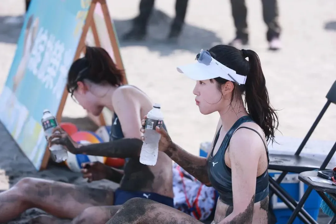 汗水浸湿乌发、奋力扑救的瞬间,被韩媒誉为“沙排场的夜明珠”,