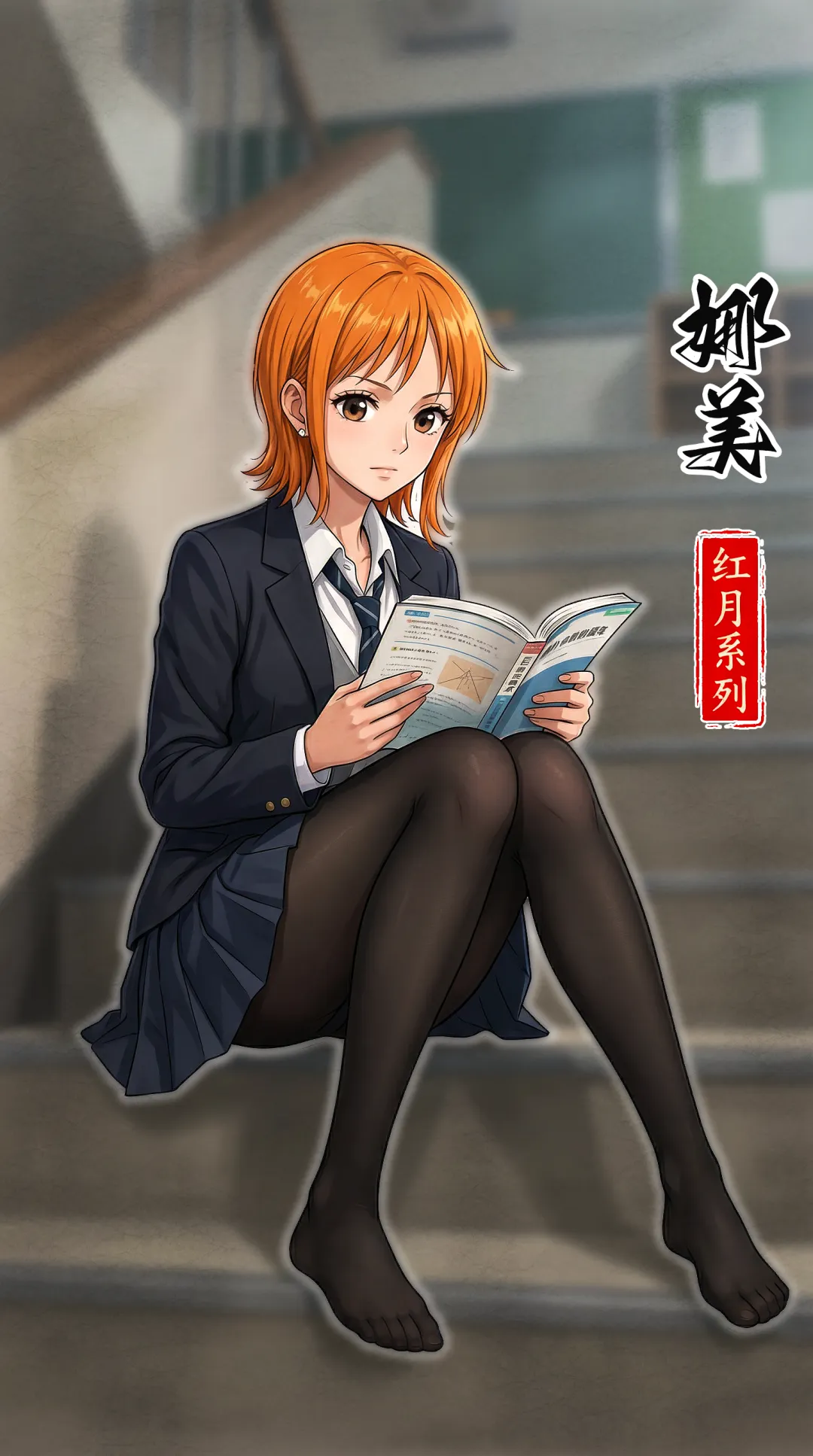娜美学姐坐在楼梯间认真复习的样子,把那份干练与灵动结合得恰到好处。