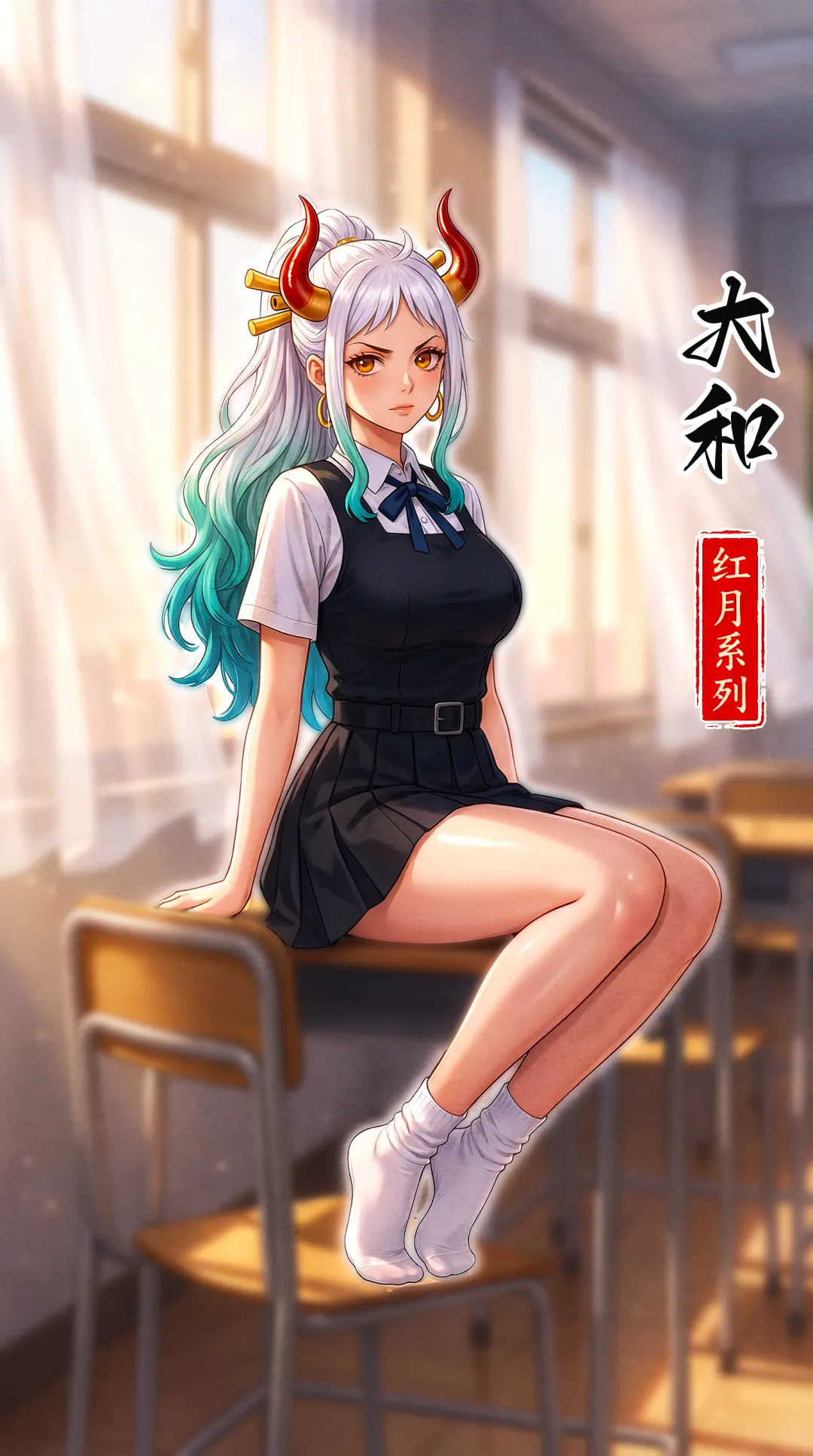 谁说校花只能文静?大和社长带你燃起来! 标志性的渐变长发和标志性的小角,坐在课桌旁的她浑身散发着阳光与力量。