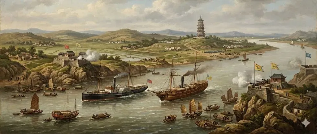 但当他们去侦察对岸的大角方向时,情况就不一样了。大批清军正在集结,无数运输船在卸载大炮和弹药。