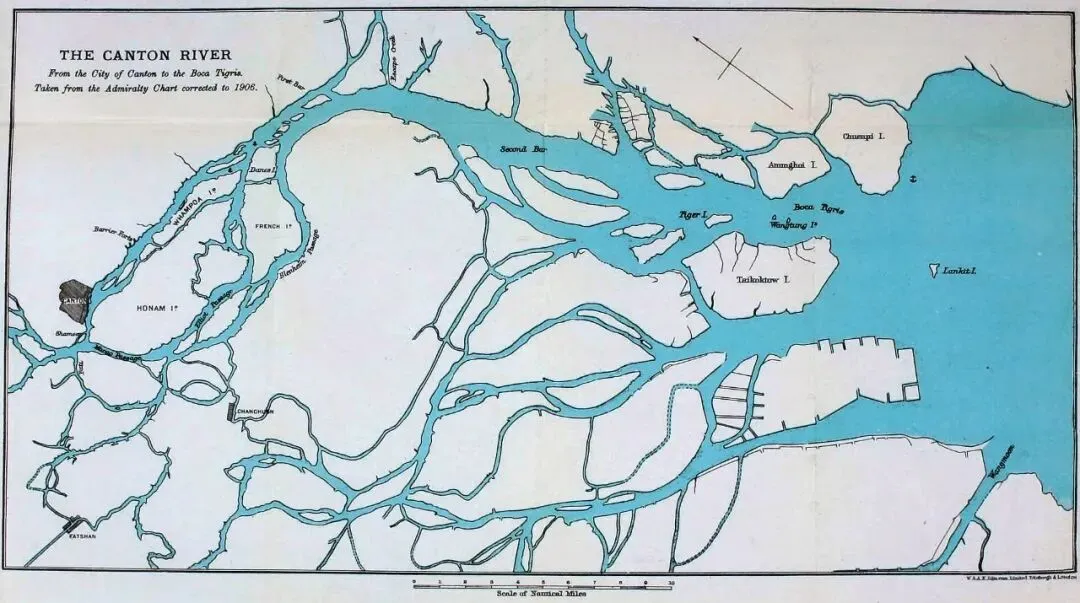 盒子君附图:二道滩在进入虎门水道以后的位置,图中可见标注Second Bar