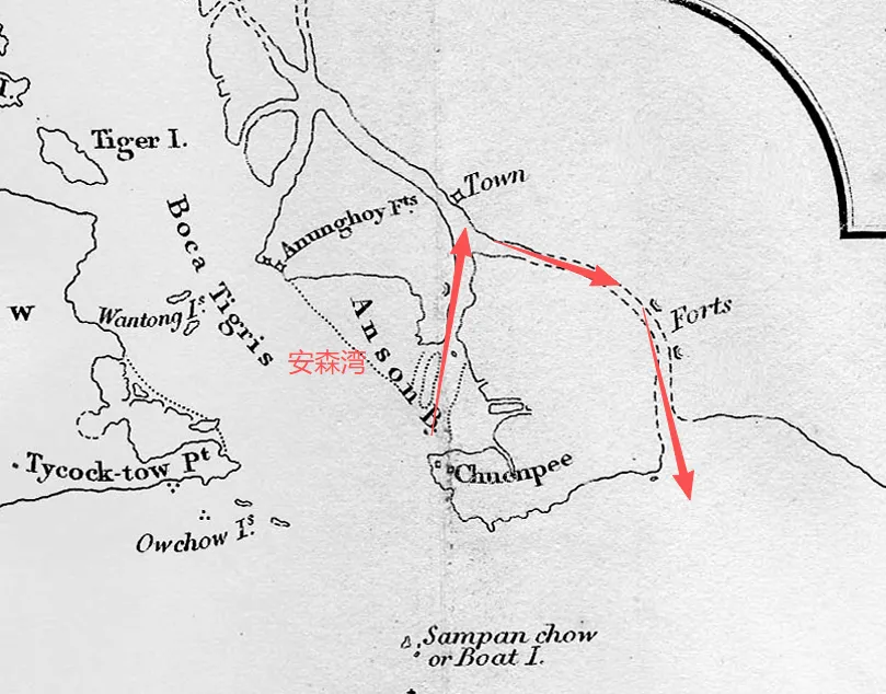 1月26日,“复仇女神号”搭载着义律和几位军官从澳门出发,直奔虎门。随后,“马达加斯加号”加入编队。义律的随行人员包括赫伯特舰长、邓达斯舰长和梅特兰舰长。