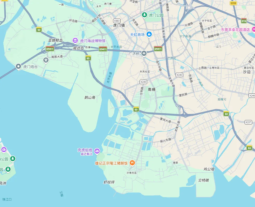 盒子君附图:现在的亚娘鞋岛、虎门镇地图