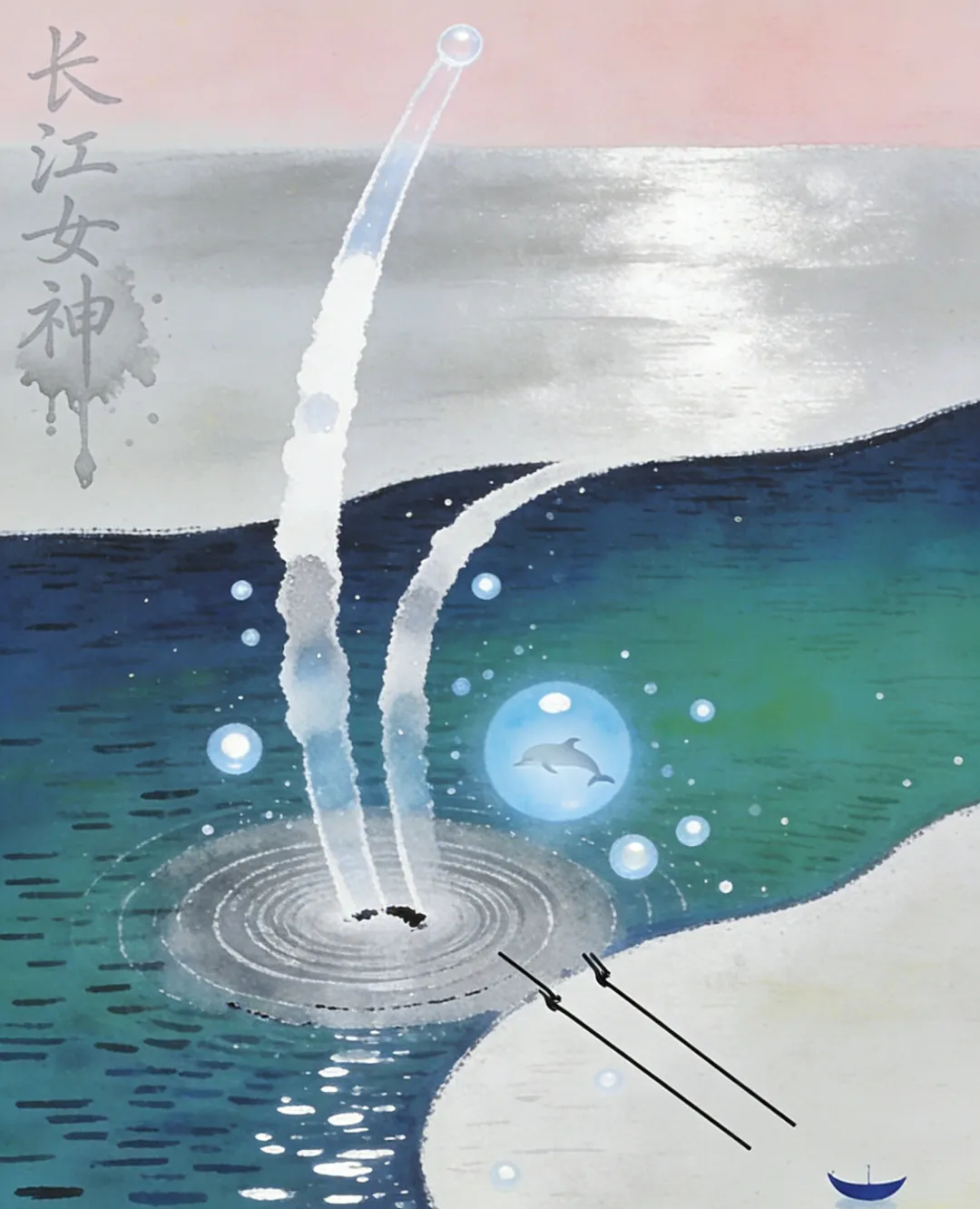 其中水系守护精灵“澹衡”即以白鱀豚为原型。“澹”(Dàn)如水波纡缓平静,有淡泊恬静之感,自带平静蓝的悠远意象,其意境在《楚辞》中尽显;“衡”取平衡、衡量之意,在《尚书》《易经》里皆有体现,精准点明协调功能。“澹”与“衡”结合,象征水域生态的恬静与平衡,古典韵味和哲学深度兼具。