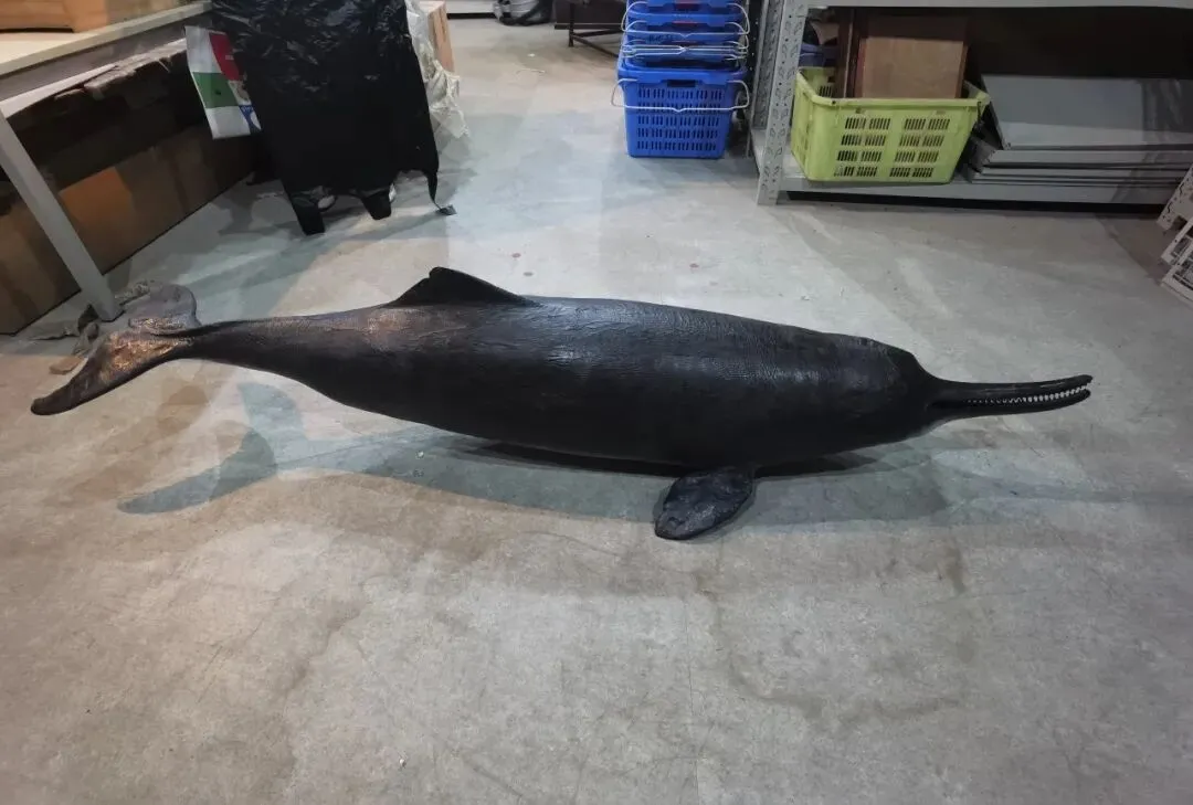 白鱀豚是我国长江中下游特有的淡水鲸类物种。它的祖先早在两千多万年前的中新世便已出现在地球上,远早于人类走出东非的时间。成体体长可达2.5米,背部浅蓝灰色,腹部白色。由于长期生活在水中,它的视力极度退化,转而演化出精密的回声定位系统,用以探测猎物和导航。