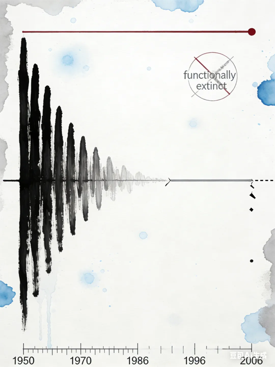 一个物种被认定为“功能性灭绝”后,若50年内再无确凿的野外发现证据,则可判定为“彻底灭绝”。