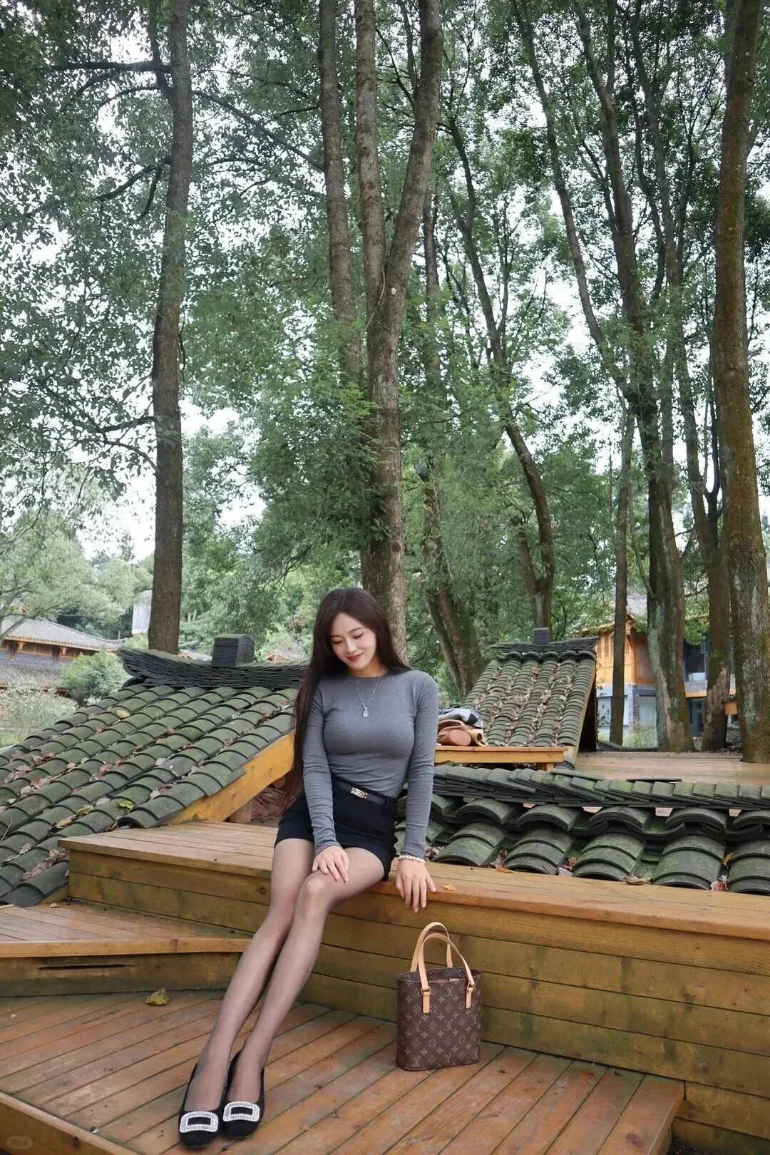 博主在外出时穿一件浅灰色的针织开衫,寒冷的时候穿,炎热的时候当披肩使用。脚上穿着纯色方扣鞋,皮色接近于肤色,腿似乎比平时要长得一些。黑丝是超薄款,几乎看不到,但是可以均匀地使腿部肤色均匀,有防晒作用。适合做婚前、见父母之用,温柔大方、有女人味。穿着相同的颜色、款式一样同身衣,低马尾一根筋似地垮下来就有了懒洋洋一气呵成的感觉。