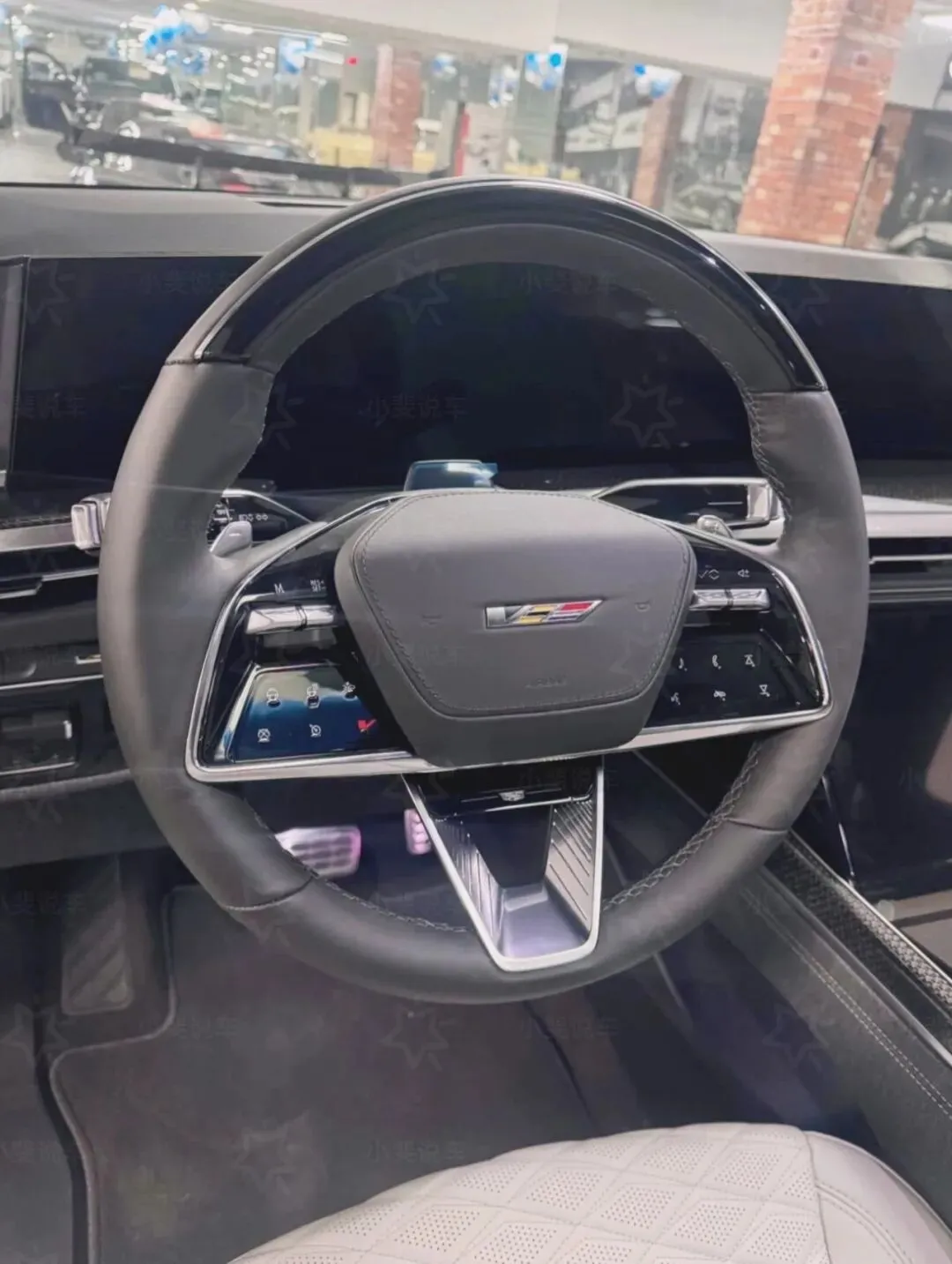 外观质感硬朗,垂直排列式大灯凌厉吸睛,中央凯迪拉克徽标升级为发光设计,夜晚点亮瞬间氛围感拉满;V系列更配备可发光前格栅包围,进一步强化性能辨识度。24英寸多条辐式轮毂搭配双边共四出排气,一眼就能看出其不凡的动力底蕴,完美诠释美式性能美学。