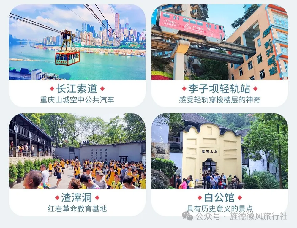 2、所有红色景点均为周一闭馆,无法参观,自动改为重庆通远门古城墙遗址、大礼堂外观、不在另行通知