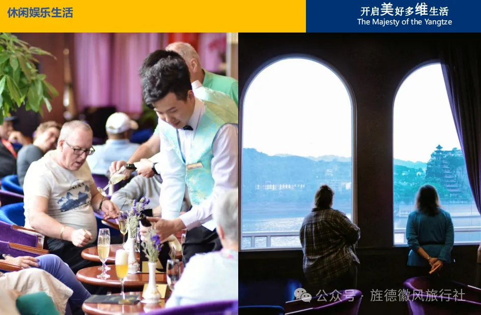 5、自由活动与消费:为了丰富您的邮轮生活,邮轮上还配有各种商业、娱乐等设施和活动,其中部分为有偿项目,各项目具体消费价格您可以与总台或邮轮上相关工作人员咨询。游船上自由活动期间,我社不会以任何名义为游客安排景点游览、购物等任何消费活动和服务,请您注意甄别,理性消费;游览沿线的旅游景点均有出售各种工艺品、旅游纪念品,我处不建议购买,如发生纠纷我处将不承担责任。自由活动期间请游客注意安全,不要私自下船.
