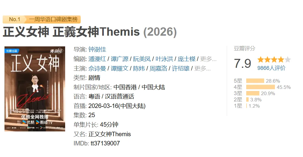 虽然《正义女神》也存在一些缺点,比如整体节奏偏短剧化,但瑕不掩瑜,《正义女神》依然是一部优秀的作品。