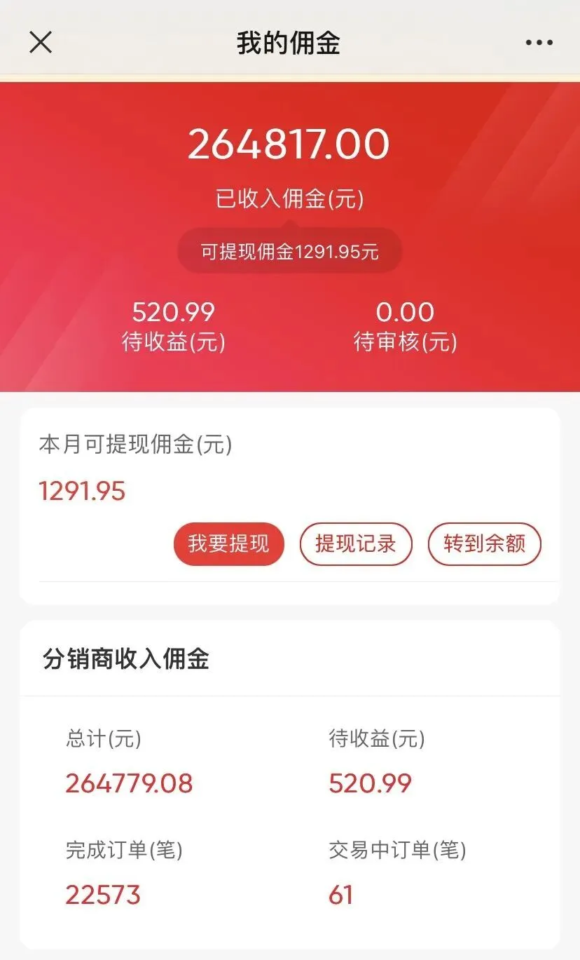 不用囤货,不用投入资金。只要分享链接就行,有客户购买,公司后台就会看到订单,公司就会发货。佣金也是系统里生成,可提现到微信钱包,可谓方便快捷,一部手机就可以做生意了。