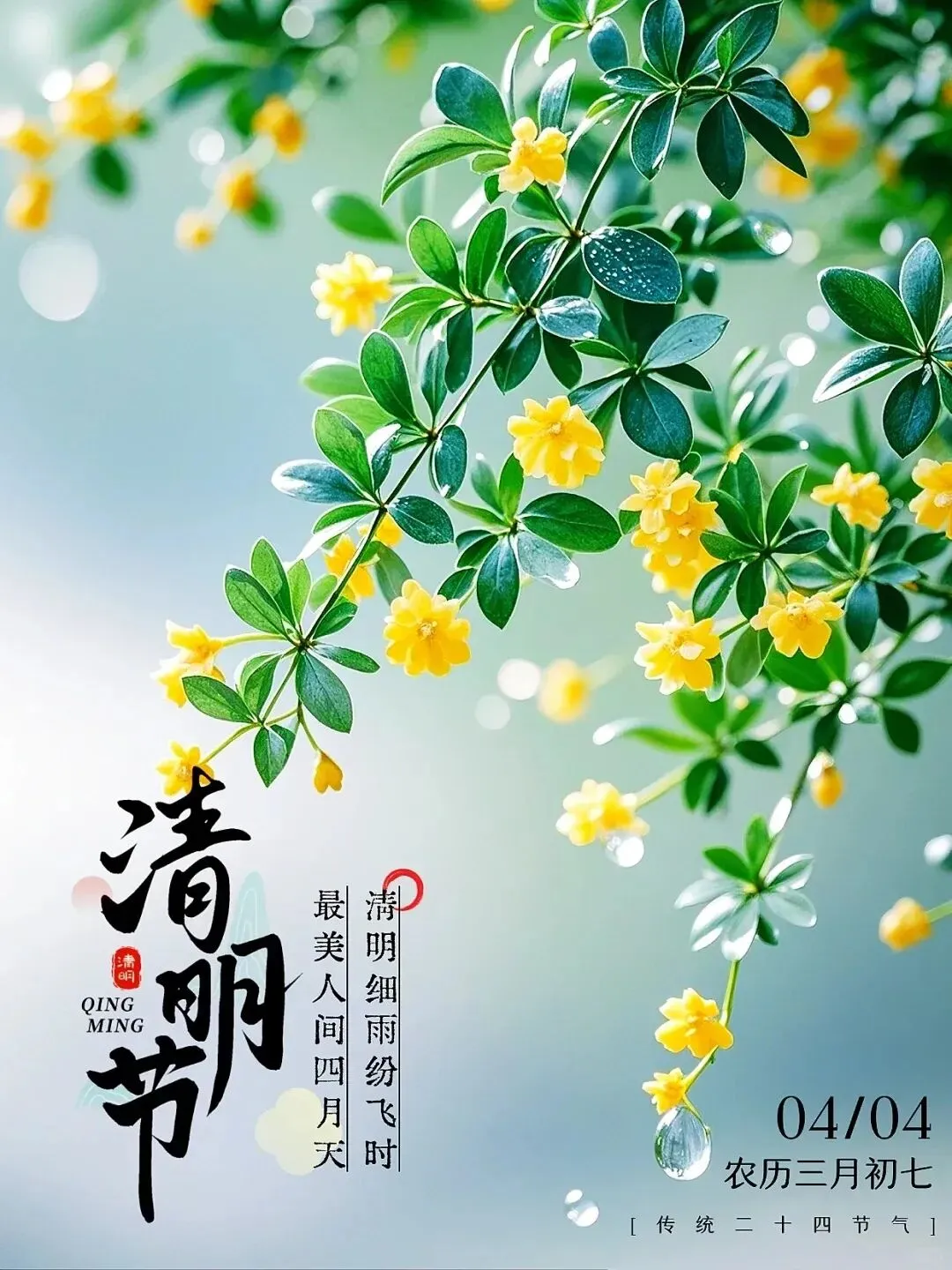 清明时节雨纷纷,黄花杨柳风含悲;祭祀先人怀旧忆,相思一片起心底;缅怀时光流年逝,祝福朋友康乐福;珍惜眼前好时光,幸福生活万年长。清明节安康!