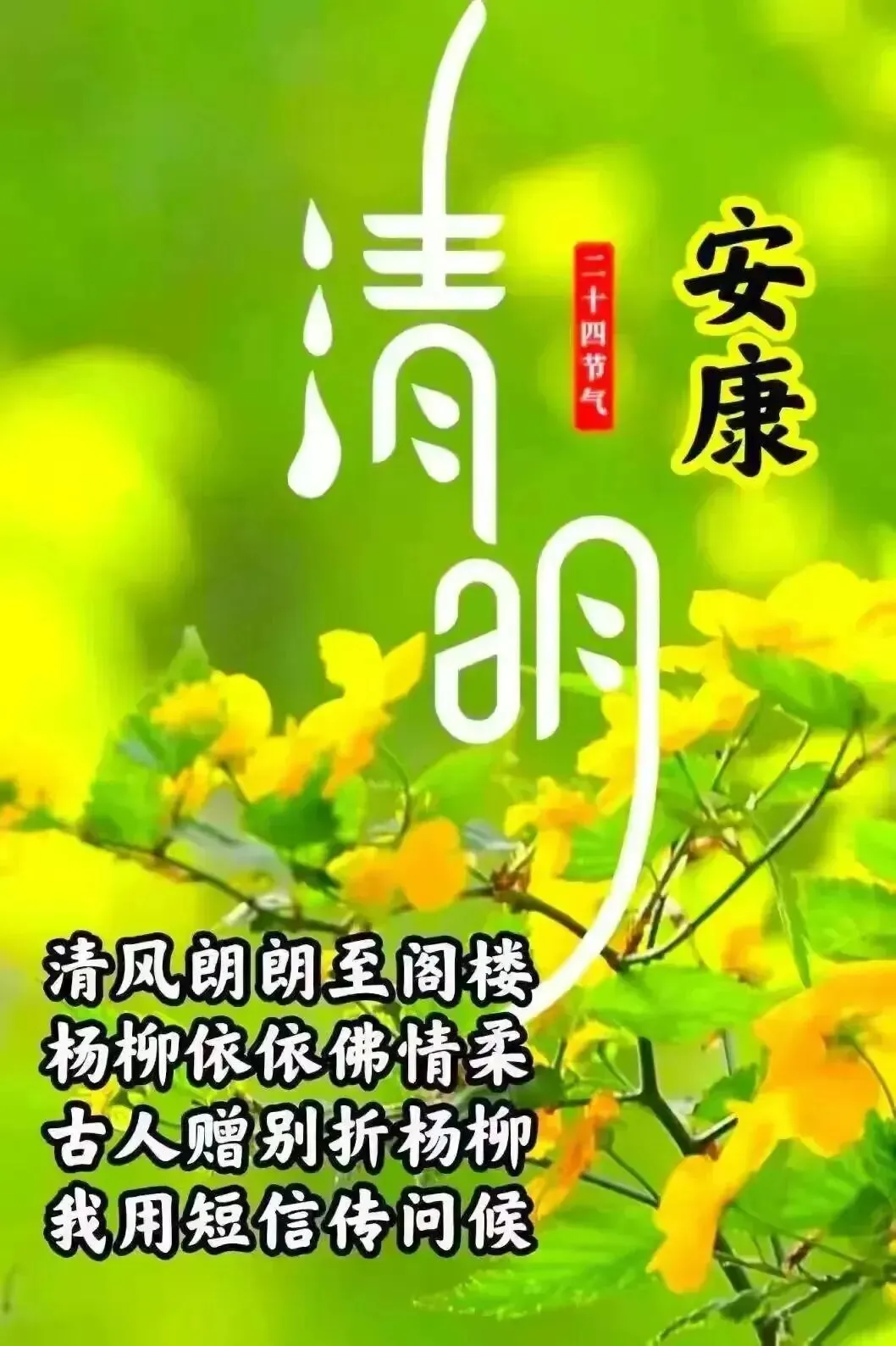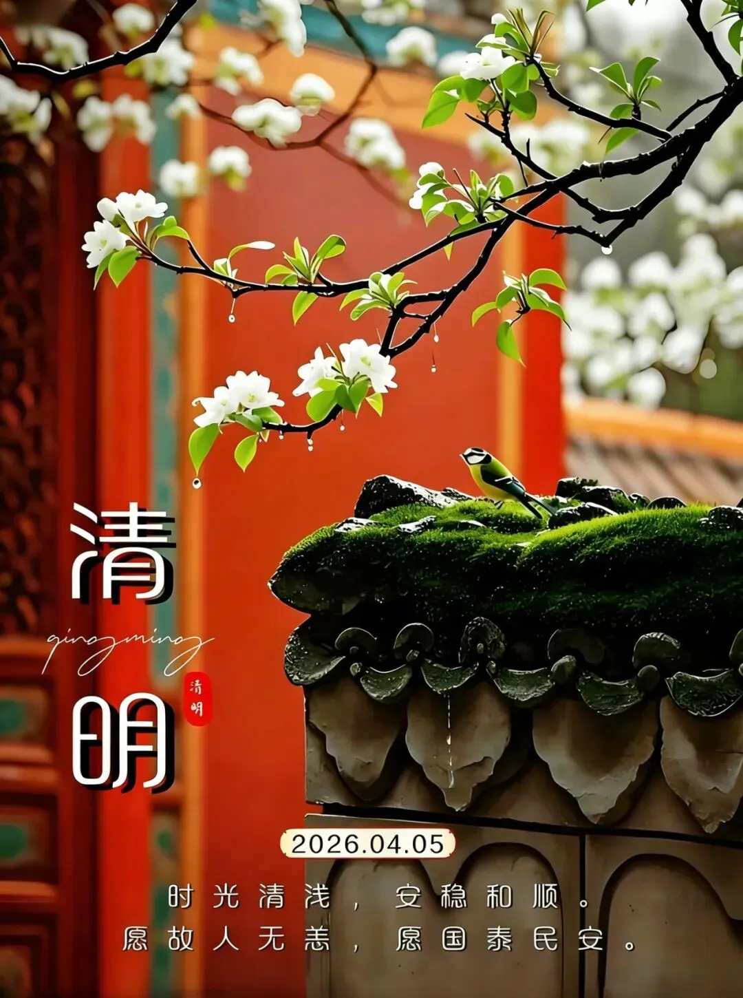 清风捎去我的惦念,轻送到你身旁;暖阳裹着我的牵挂,温暖你的心房。清明时节,愿你放下愁绪,自在安然,喜乐常伴🌿🌸🕊️