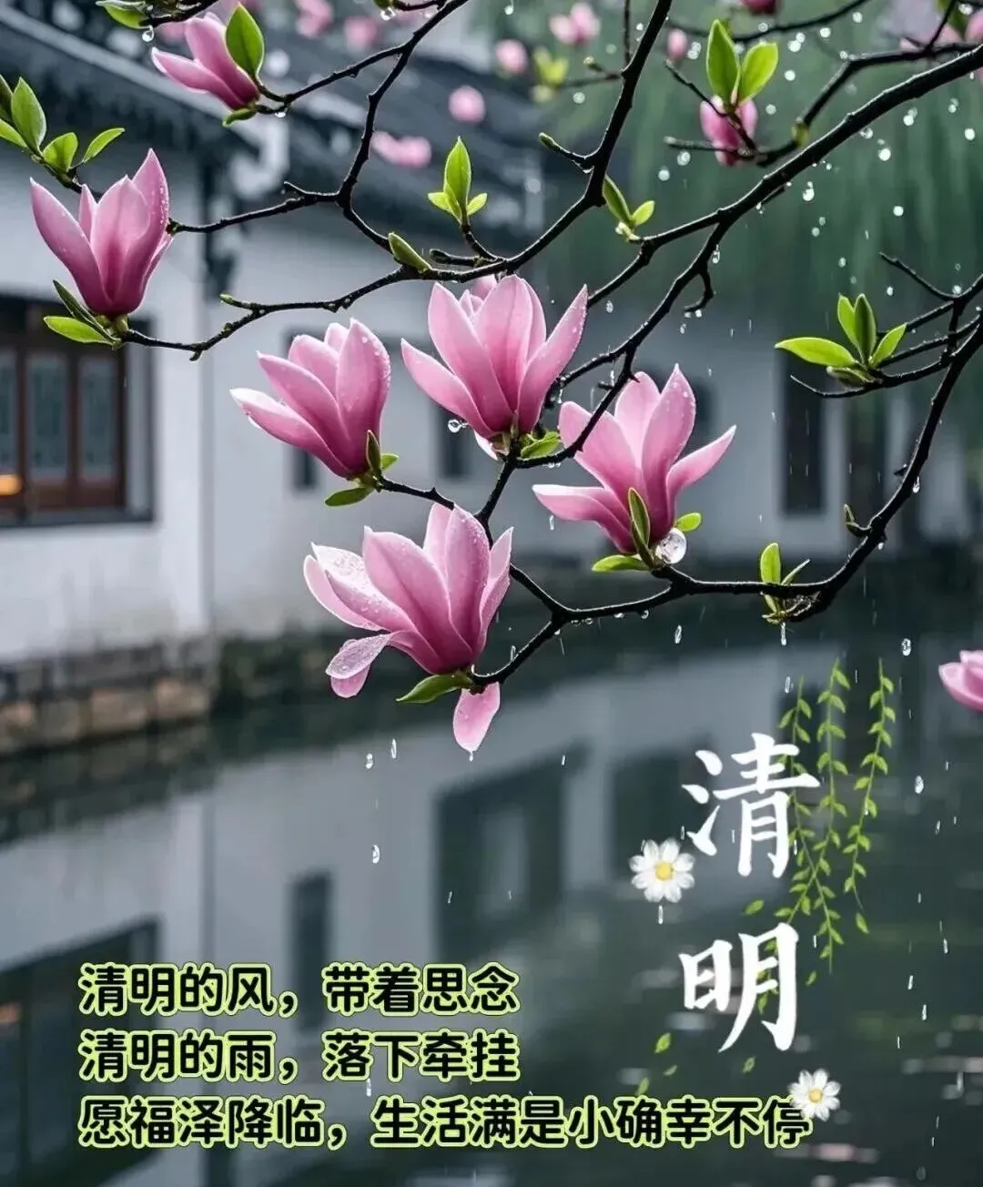 清明雨落润心扉,杨柳依依念故人,缅怀往昔惜当下,祈福平安伴终身。愿你远离忧愁,喜乐常存,万事顺心💐🌧️🙂