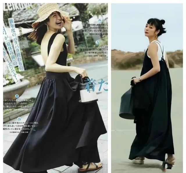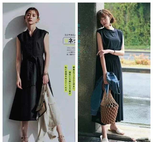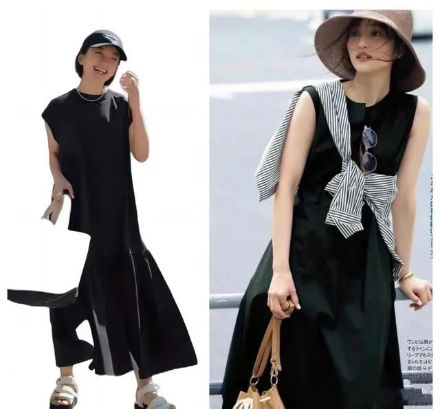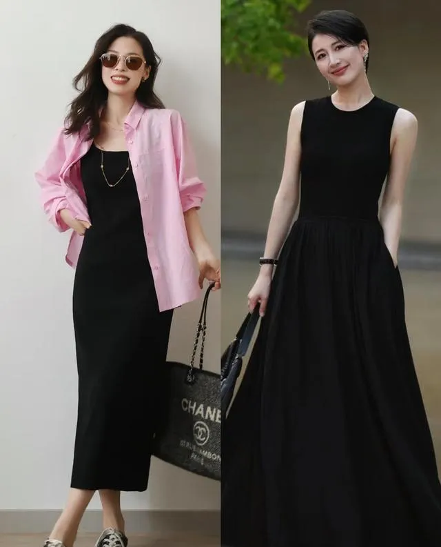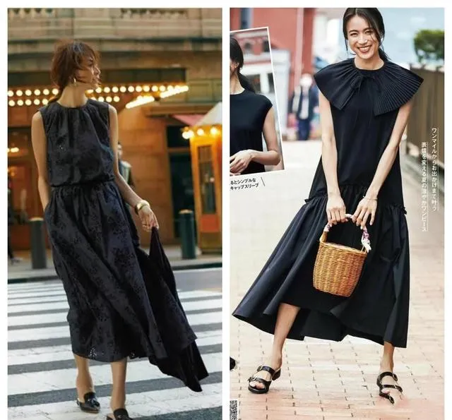 我按照上面的思路,重新搭了那条黑裙子。换了双露脚背的深棕色芭蕾鞋,拎了个藤编和皮质拼接的篮子包。走去咖啡馆的路上,有风,裙摆贴着小腿又离开。坐在户外座位时,裙子的褶皱在阳光下有了明暗。一个朋友路过说:“今天这身好看,很松弛。”我知道,这次不是“气质”的客套话。因为当黑色不再是一片沉默的阴影,而有了面料的肌理、版型的筋骨和搭配的呼吸时,它才能衬托出人本身的故事感。