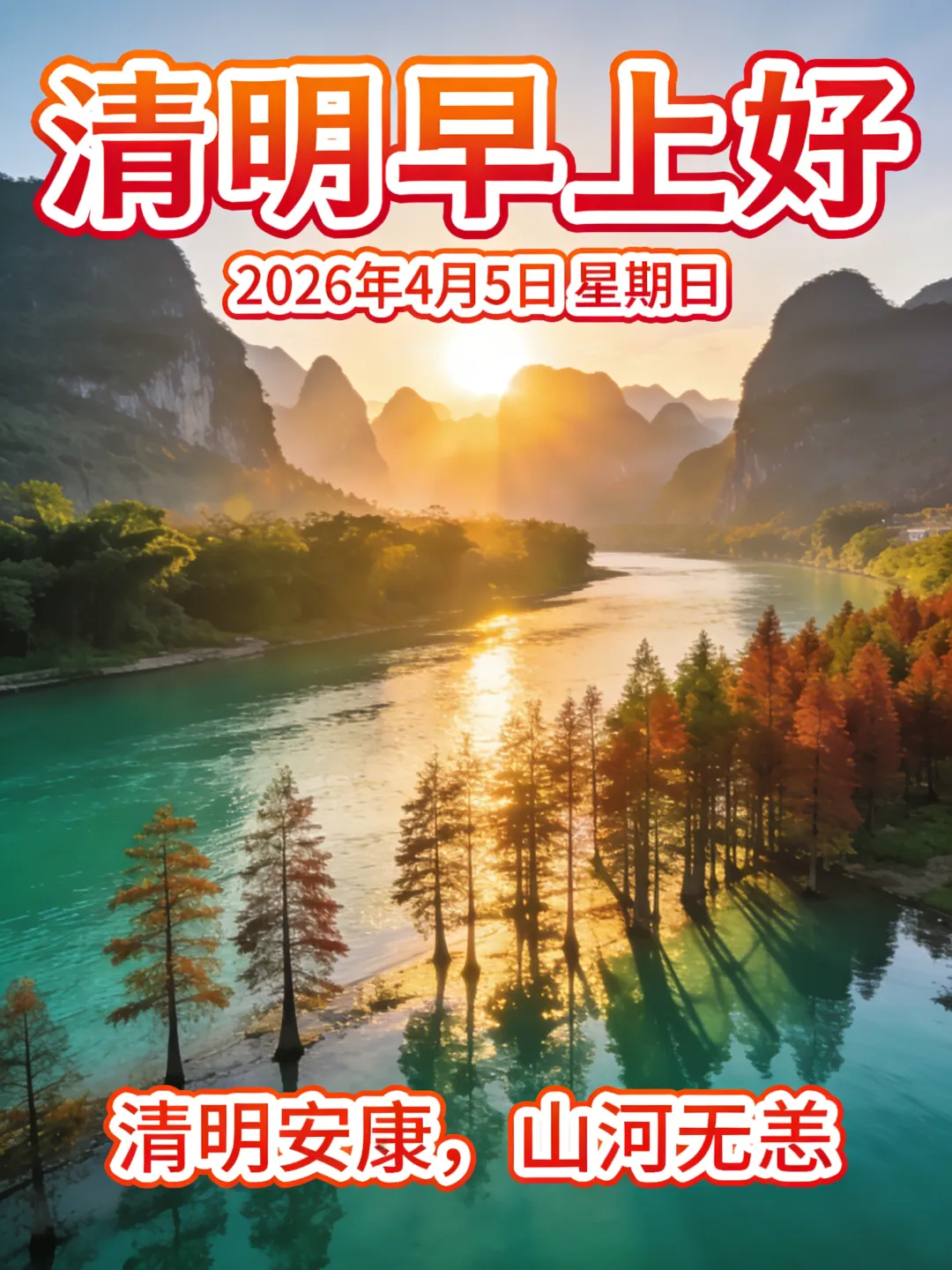 明时节来踏青,桃红柳绿真清新;山清水清脚步轻,眼明心明前途明;十里桃花百里杏,幸福伴你一年行。清明节欢乐!