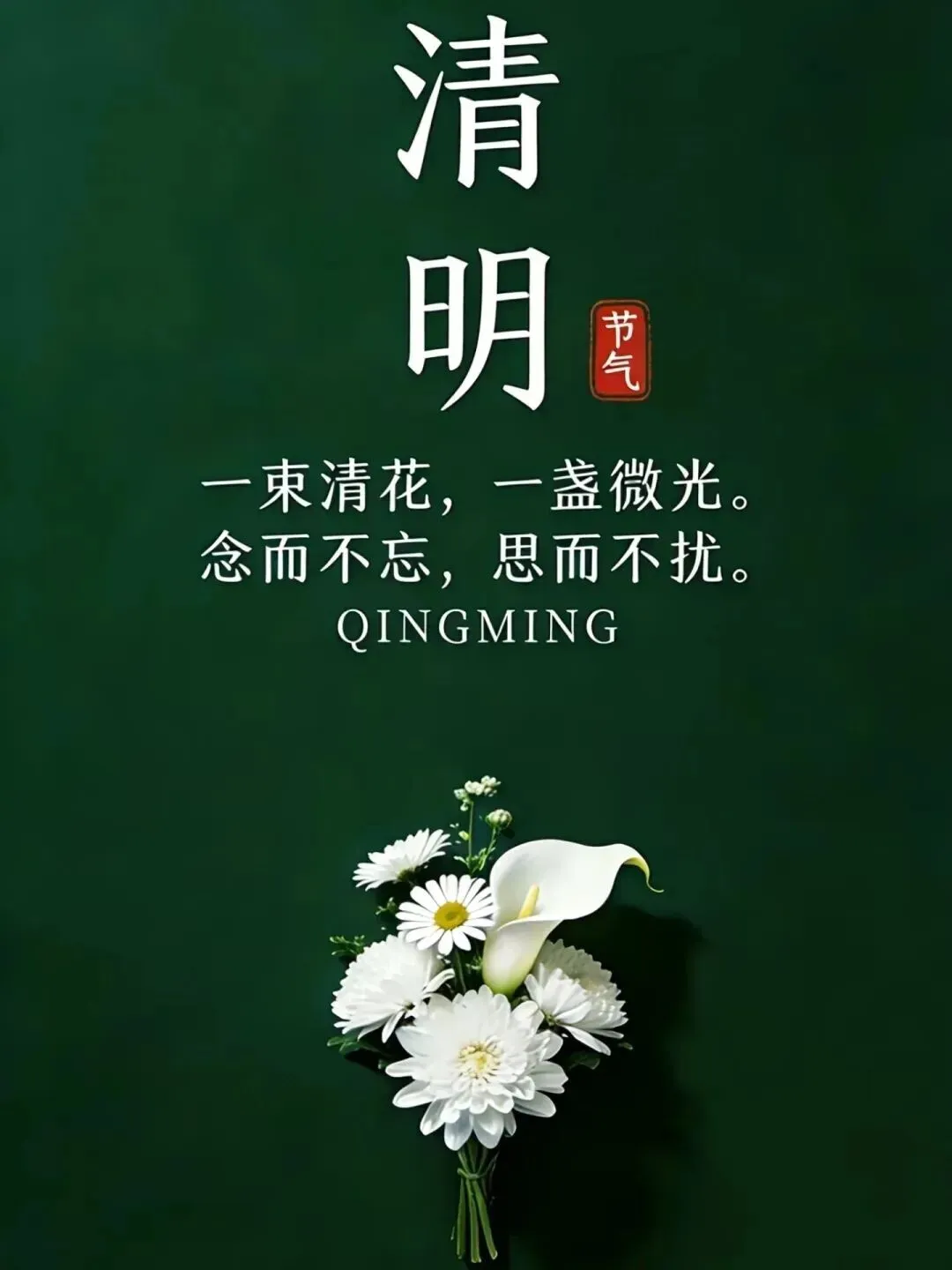 清明雨飘离人泪,绵绵哀思寄祝福;清明风吹赤子心,翩翩纸钱慰灵魂;清明柳牵朋友心,怒放鲜花表情真。愿清明平安健康万事和顺。