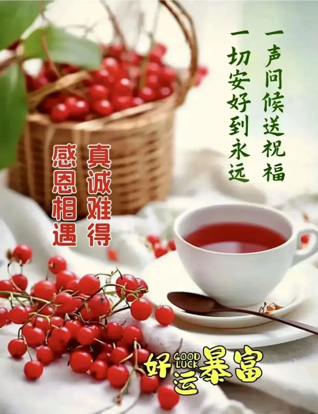 11,好风好月好心情,好吃好喝好开心,好梦好运好热闹,好人好家好康宁,把十二个好送给你,祝你一生好好,全家好好!